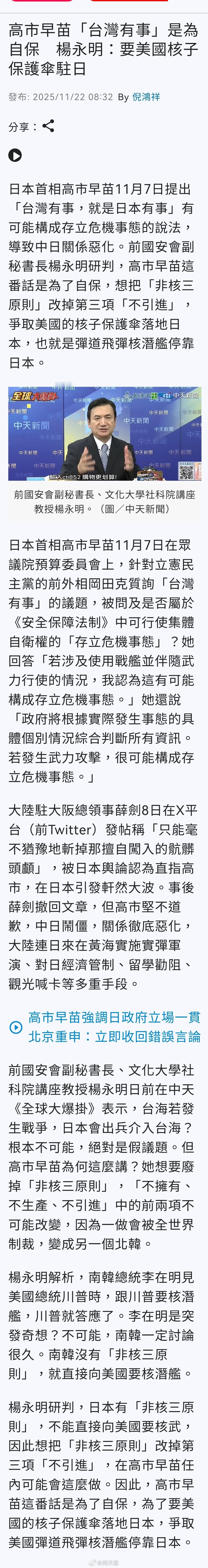 高市早苗「台湾有事」是为自保,学者曝背后目的。