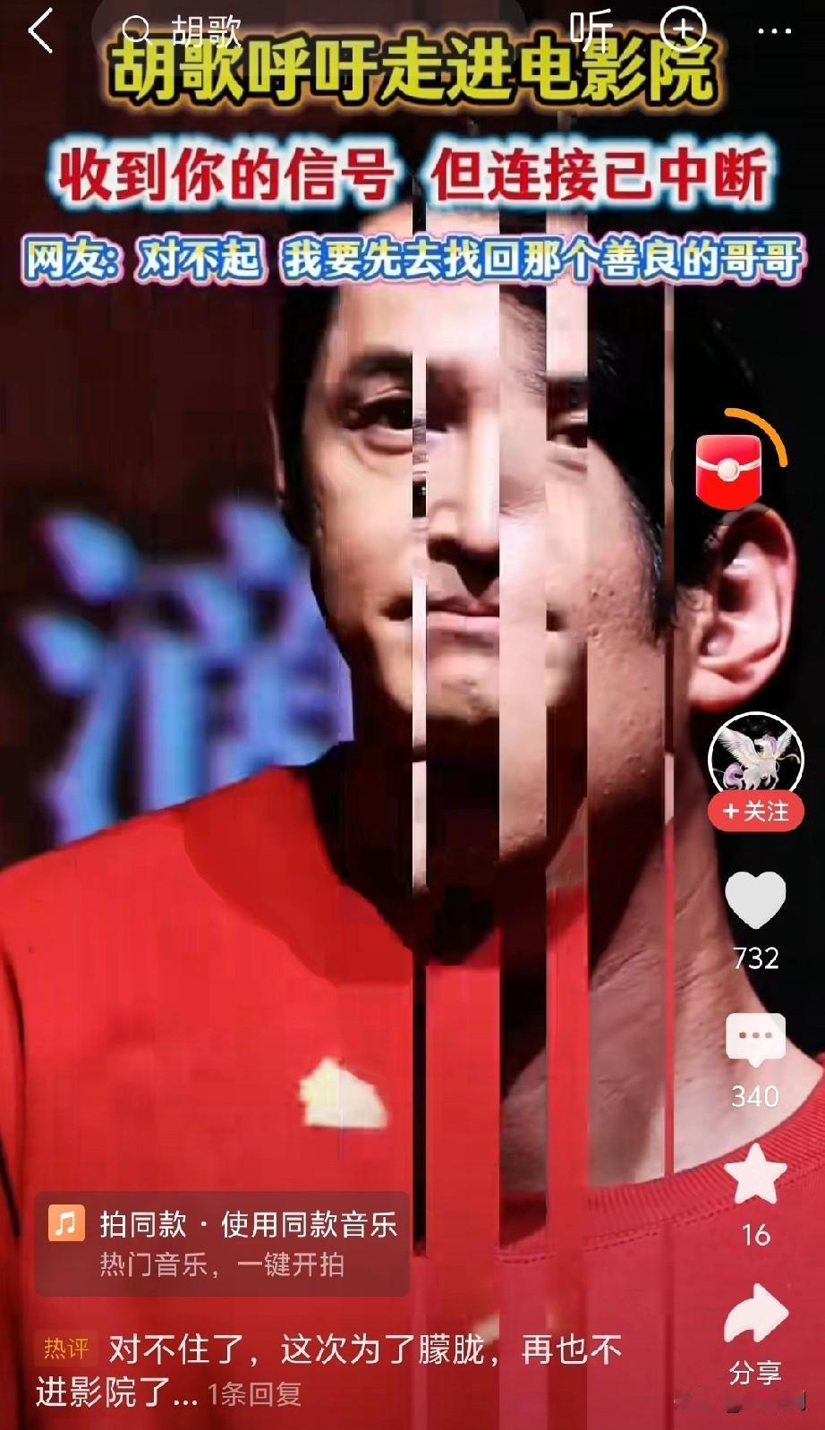 胡歌呼吁众人走进电影院,网友回应称已收到其信号,然而连接已然中断。 娱乐圈、明星这些词汇,象征着流量,也象征着财富。 网友直言,财富归你们所有,你们能够肆意而为。 可流量是大众赋予的,我们虽无力改变娱乐圈,却能选择不去电影院。