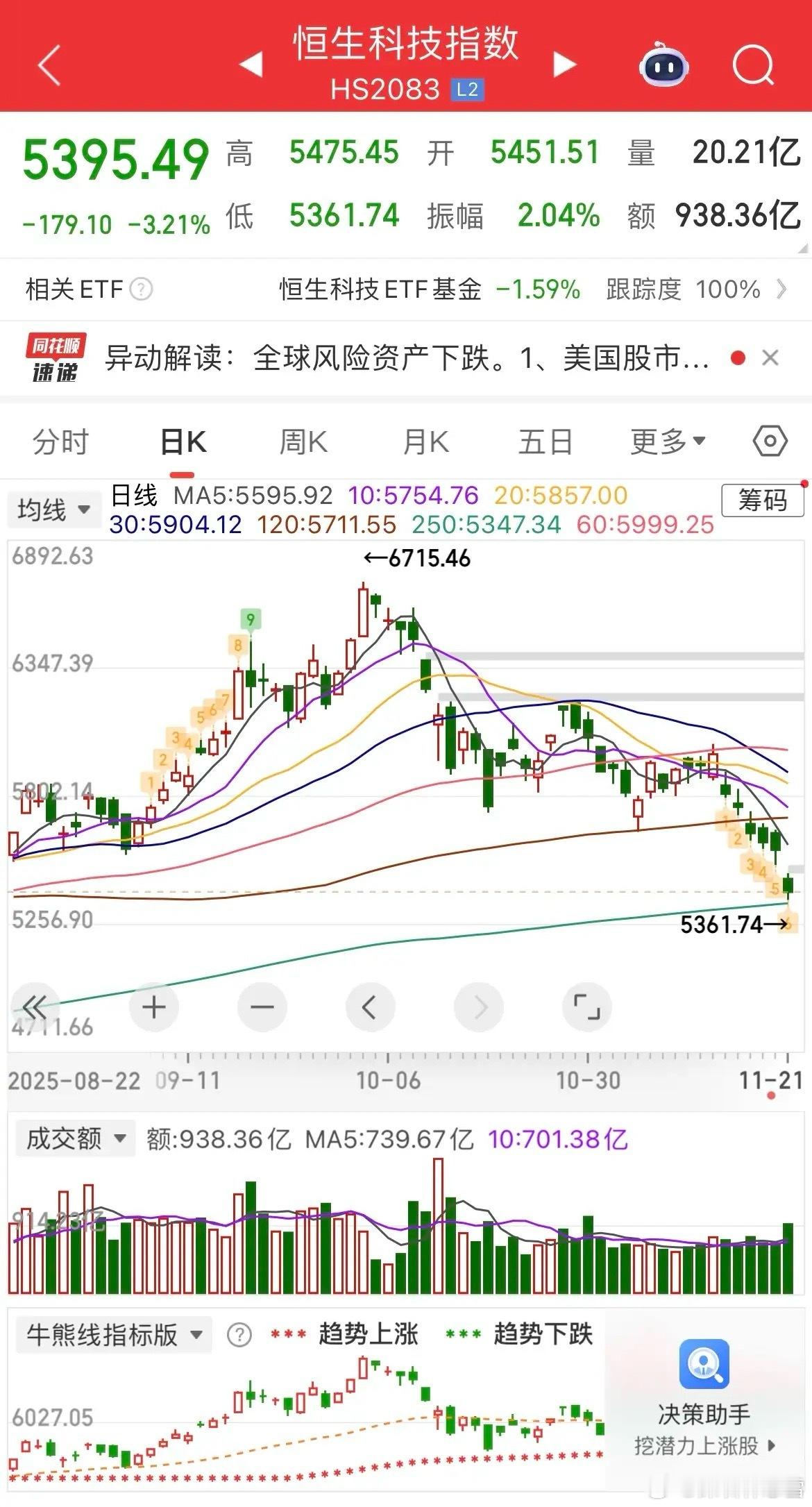 重磅利好落地!美联储降息预期升温,全球市场共振助力A股港股修复全球资本市场迎来关键转折,美联储政策信号释放强力利好,带动美股探底回升,为A股、港股后续走势注入信心。纽约联储主席威廉姆斯明确表态12月仍有降息空间,这一鸽派信号迅速扭转市场预期,12月降息概率已飙升至72%以上,推动美债收益率回落,风险资产集体走强。隔夜美股三大指数全线翻红,道指涨逾1%,纳指涨0.88%,大型科技股呈现结构性机会,苹果涨近2%,存储龙头闪迪、美光科技分别涨超2%和近3%。中概股同步迎来普涨行情,纳斯达克中国金龙指数涨逾1%,京东、哔哩涨近2%,阿特斯太阳能大涨超5%,百度涨0.45%,中国资产在全球市场中展现出修复韧性。富时A50涨0.71%,恒生主连涨1.22%,跨市场联动效应显著,为A股、港股企稳回升铺垫基础。回顾昨日A股市场,沪指遭遇百点长阴,再度失守3900点并跌破60日均线,创业板指大跌超4%,两市近500只个股跌幅超7%,中位数跌幅近4%,内资资金流出近1800亿,市场情绪一度承压。但值得关注的是,两市总成交逼近2万亿,放量调整释放部分风险,为后续修复预留空间。板块方面,AI应用、机器人概念逆势走强,军工方向局部活跃,而半导体、新能源等科技成长赛道重挫,成为市场情绪主导关键。展望下周,A股大概率迎来反包修复行情,能否快速完成缺口回补、量能是否持续放大成为趋势判断核心——放量反包将印证趋势延续,反之则需警惕惯性调整风险。港股经历六连调整后,在中概股上涨与全球流动性宽松预期加持下,止跌回升概率显著提升。市场企稳的关键仍在于科技成长赛道的修复力度,半导体、新能源作为核心主线,其表现将直接决定市场人气与反弹高度。全球降息预期升温背景下,跨境资金流动与风险偏好回升形成共振,A股、港股估值修复窗口已逐步打开。后续需重点关注量能变化与核心板块轮动,把握政策红利与市场修复带来的结构性机会。