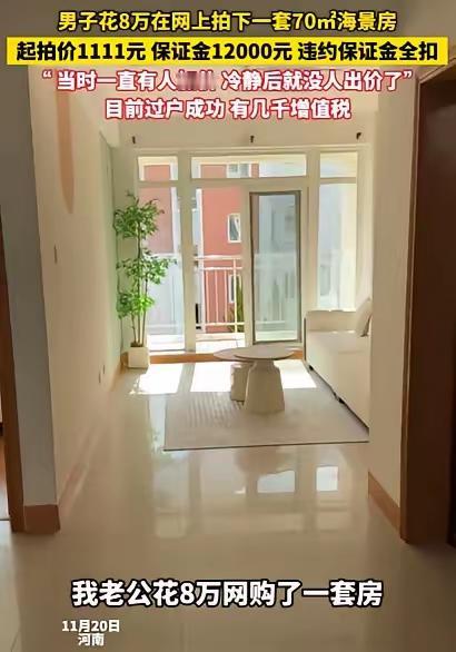8万块在一线城市连个卫生间零头都不够,河南大哥居然直接网购到70平海景房!这操作真的不是开了挂? 起拍价才1111元,大哥刷到拍卖平台推送,三分钟扫脸支付搞定,全程跟买件衣服似的爽快。身边人都劝他小心是骗局,毕竟没去过乳山,全凭网上信息下单,换谁都得捏把汗。 自驾900公里实地看房,打开门那一刻悬着的心才算落地。70平两居室方正整洁,步行1.5公里就是大海,虽然是2006年的步梯楼,没电梯没暖气,但这个价格真的没话说。 有人吐槽配套不全、冬天没法住,可我觉得挺值。房子本就不是越贵越好,适合自己才重要。大哥计划夏天来避暑,其余时间出租,既圆了海景梦,又不用背负房贷压力,这才是生活的智慧。 现在乳山不少海景房起拍价才1万出头,不是没有风险,但只要摸清规则、看清产权,普通人也能捡漏。生活哪有那么多完美选项,敢想敢试,花小钱也能实现别人眼中的遥不可及。海景房 银滩房产价格 河南二手房 海景房促销陷阱