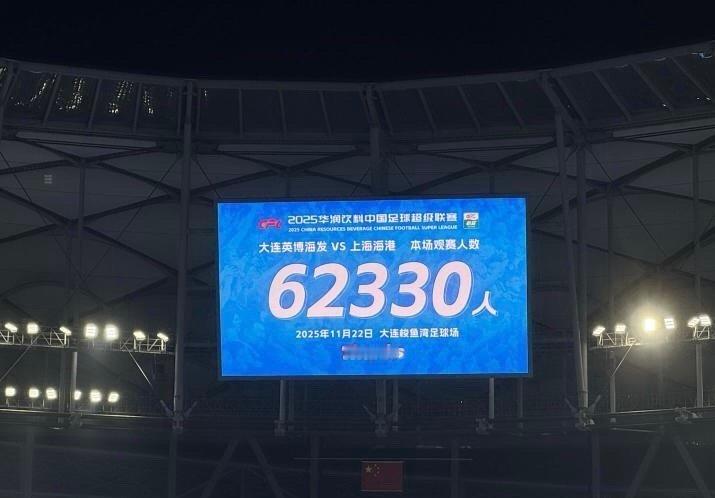 大连英博主场迎战上海海港的中超收官战,共有62330人涌入大连梭鱼湾足球场观战,超越此前工体京沪大战的62291人,创造本赛季中超上座最高纪录,历史第二上座纪录。