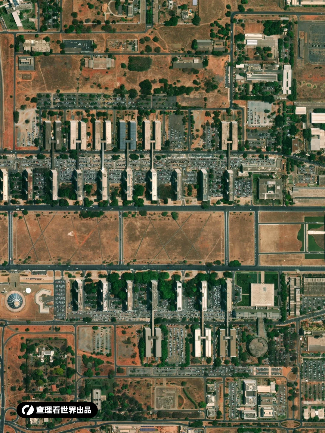 巴西利亚的城市中轴线是现代主义建筑的巅峰之作,由巴西建筑师奥斯卡・尼迈耶与城市规划师卢西奥・科斯塔共同设计,以 “飞机型” 规划布局闻名于世。这条贯穿城市核心的轴线长约 12 公里,形似飞机的机身,两端延伸出象征 “机翼” 的功能区,完美融合功能性与美学想象。 轴线核心地标与设计逻辑: [一R]政治中心:权力的几何宣言,轴线东端矗立着巴西国会大厦(Congresso Nacional),两座碗状议会厅与垂直的办公楼形成强烈视觉冲击,圆顶与直线的碰撞象征民主与秩序。总统府 “高原宫”(Palácio do Planalto)与最高法院分列两侧,以简洁的现代主义线条凸显权力的庄重。 [二R]文化与交通枢纽:轴线中段是 “三权广场”(Praça dos Três Poderes),周边环绕国家剧院、巴西利亚大教堂等文化地标。大教堂以 16 根混凝土支柱构成穹顶,内部彩色玻璃与光影交织,成为轴线的精神地标。而轴线下方隐藏的交通系统,使地面空间完全留给行人与景观,体现 “人车分流” 的先进理念。 [三R]功能延伸:从核心到 “机翼”,轴线向两侧延伸的 “机翼” 为住宅区与商业区,以标准化模块建筑排列,既保证效率又不失韵律。西端的 “机尾” 则是长途汽车站与广播电视塔,形成完整的功能闭环。 巴西利亚中轴线打破传统城市的环形扩张模式,以线性结构将政治、文化、生活空间串联,如同 “飞行的城市” 象征国家腾飞。这种将建筑视为 “凝固的音乐” 的设计,至今仍是现代城市规划的教科书案例。 巴西利亚 巴西 城市设计 城市规划 城市 地理 地图