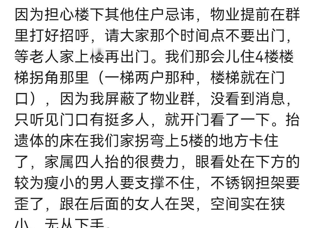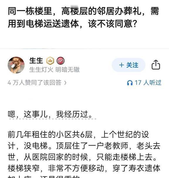 邻居办丧礼,需用到电梯运送遗体,该不该同意 和谐邻里关系 邻居 善意的举动 人间温暖 葬礼 记录吧 中式葬礼