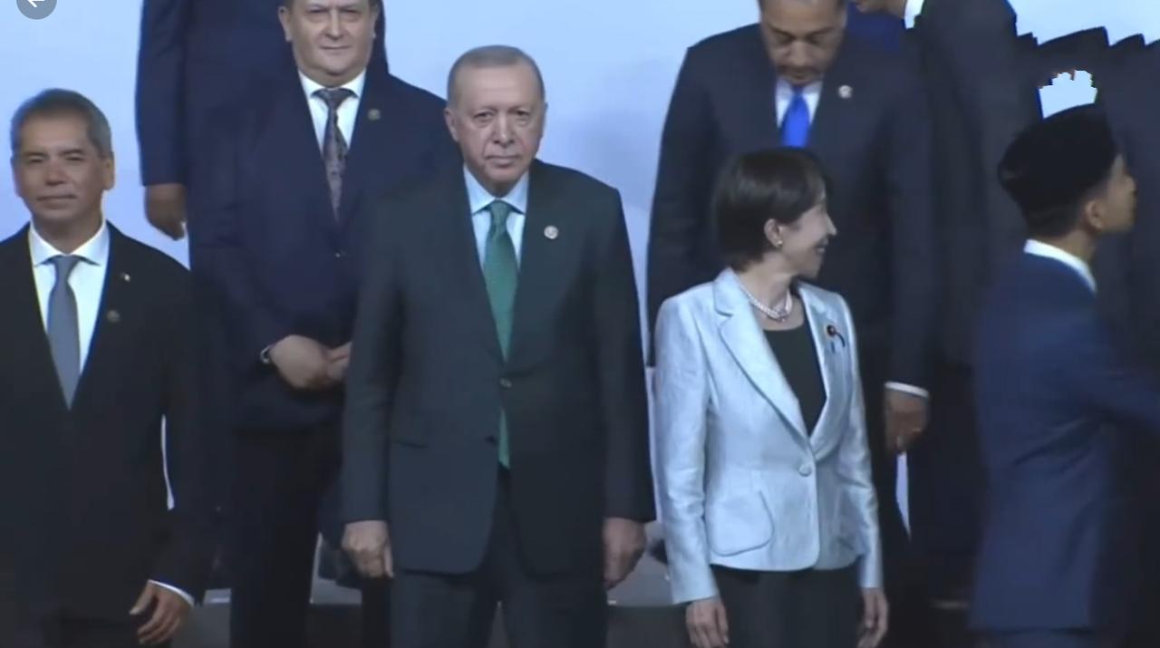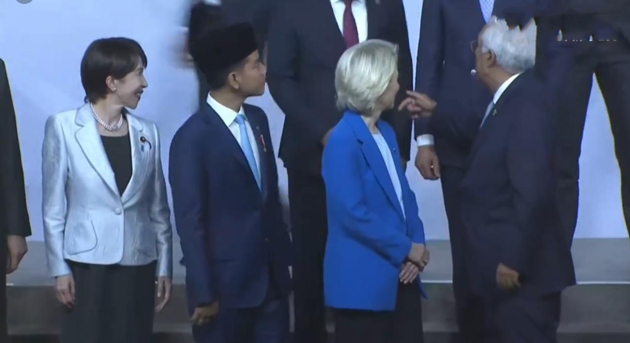 南非G20拍大合影花絮,日本女首相站在第一排,乐呵呵的听别人唠嗑!她左边是埃尔多安,右边是印尼副总统,不过她并没有和左右两边的人说话,而是扭头看着别人,听别人聊天,还听得很开心。 看来女首相也爱“吃瓜”,听别人唠嗑很开心,她并没有插言却乐呵呵的看着说话的人,这也是一种尊重吧,毕竟她是第一次参加这个峰会,和好多人并不熟悉。 据悉,她在G20开幕式结束后才抵达峰会现场,一个人孤孤单单的走红毯,和别的人员并无互动,所以拍大合照时并没有什么人主动与她说话。