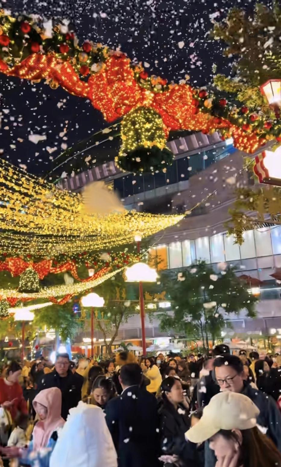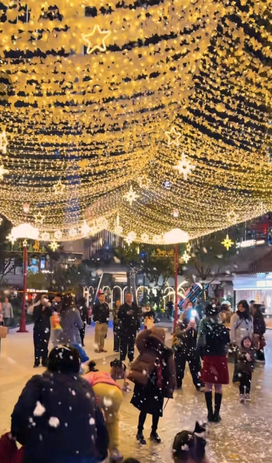 重庆人对下雪有种执念,即使是下的假雪也是爱得不得了,周末的光环购物公园真的会下雪哦,人气爆棚,氛围感十足,浪漫的重庆等着你来相遇!(图片来源于网络侵删)