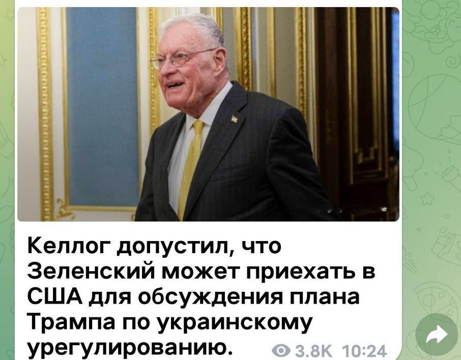 美总统特使凯洛格暗示,泽连斯基✈️可能赴美讨论特朗普的乌克兰🕊️和平计划。❗️美国🇺🇸或推动基辅以领土换安全🛡️(безопасность),凯洛格称“乌克兰将面临艰难抉择🤔”。他认为美国距解决冲突仅“最后两米”:“最后10米最难,我们已走到第2米”。他还强调,乌克兰总统选举🗳️是“安抚民心的必要进程”(успокоят украинский народ)。