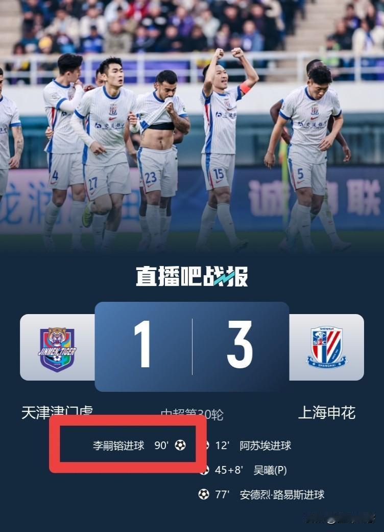 李嗣镕中超首秀替补登场仅四分钟, 便轰开了申花球门,这下小伙子不但为自己在中超开了一个好头,而且还给“老爹”李明涨大脸了! 中超收官战津门虎主场挑战上海申花,结果不到80分钟就被对手打个3:0,就当大家以为这场比赛将以这个结果收场时,比赛却迎来了转机,第86分钟于根伟做出全场改变比分的换人,他派上了国安总经理李明的“爱子”李嗣镕上场准备捱完时间,不过在第90分钟,李嗣镕在门前机警抢点头槌破门将比分改写为1:3,虽然难以改变球队输球的事实,但是作为津门虎本赛季的“压轴”进球,足以让李嗣镕载入球队的历史。 这下,李嗣镕下赛季续约的可能性将进一步增大,甚至还能搏得一个首发的机会![作揖][作揖][作揖] 带定位晒今日生活 我的今日状态:💰期待暴富 我这里的天气:🌤️多云