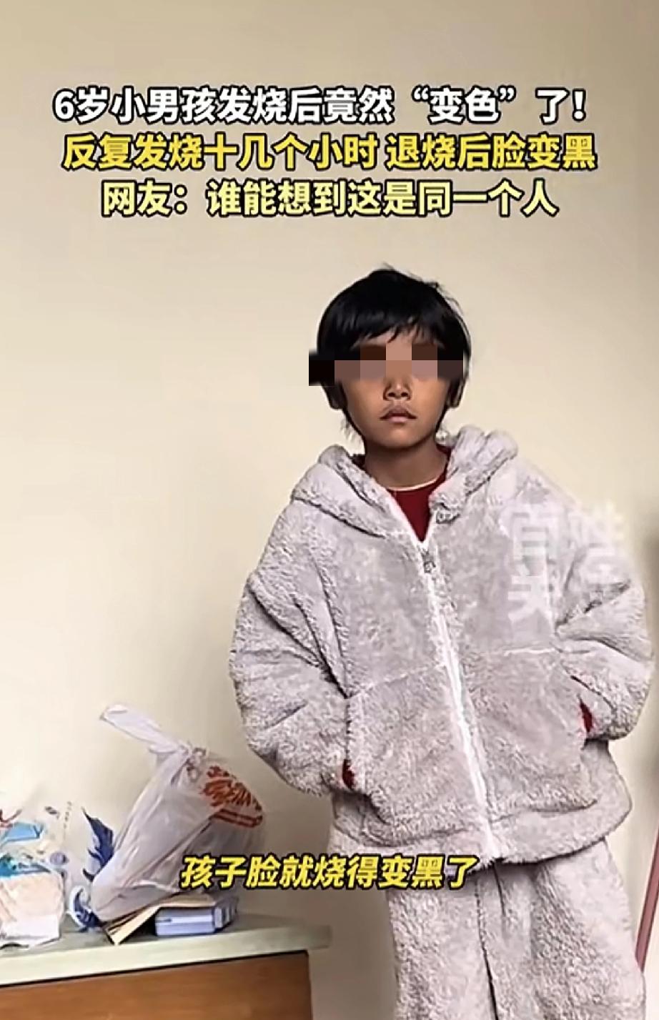 湖南,一宝妈发视频称,前几天她的孩子感冒发烧,上午还才38.5℃,到晚上就烧到了40℃,期间宝妈又是物理降温又是喂退烧药,但退烧效果都不好,无奈只得带着去医院输液。果然,孩子输液之后很快就退了烧,且精神状态也恢复得很好,但就是平日里看起来皮肤白静的孩子,退烧后这脸却变得黝黑了,看起来就像是被太阳晒黑的一样。 于是宝妈也很好奇的将此事发到网上,询问广大网友们这是什么情况?便引起了大伙的一片热议。 对此有网友就表示:连续高热下皮肤敏感、皮下毛细血管充血导致的色素沉淀,不是大事,我初中同学有个发完烧成熊猫脸的,黑眼圈、黑嘴圈,初一下学期开学变的,初中毕业还在。 还有网友表示:我真的遇见过,我一战友,新兵连过年期间高烧39℃多,吃药打针好了以后,以前我们叫他小白,后来叫小黑,应该没啥影响。 也有网友建议:看着太让人心疼了!发烧后突然“变色”肯定是身体发出的警报,还是赶紧带孩子去医院做详细检查,就怕伤到肝肾! 那么,孩子发烧后脸部或皮肤变黑了是怎么回事?需要到医院检查吗? 医生解释,孩子的脸部其实是代谢的一面镜子,而人体器官中,肝脏才是人体最大的解毒器官,进入体内的有毒的成分几乎都要通过肝脏,进行解毒的处理。 如果孩子发烧后,其脸色的皮肤发黑,其实是肝脏在代谢体内的毒素,这时无论是大人还是孩子,几乎都会出现面色暗淡无光等症状。所以,父母也不用太过担心。由于代谢功能紊乱,导致皮肤色素沉积,所以皮肤变黑也是肝功能异常的一种表现。 这时,只要孩子精神状态好,且无其他异常,由于宝宝的代谢能力十分旺盛,只需多给孩子喝水、吃蔬菜水果,清淡易消化的食物,这变黑的皮肤也会逐渐消失,一般也不需要服药处理。 当然,如果观察两天后,孩子的黑色素没有改变,或孩子精神状态不好,饮食也不好,建议爸爸妈妈及时带孩子到医院就诊,完善相关检查了。