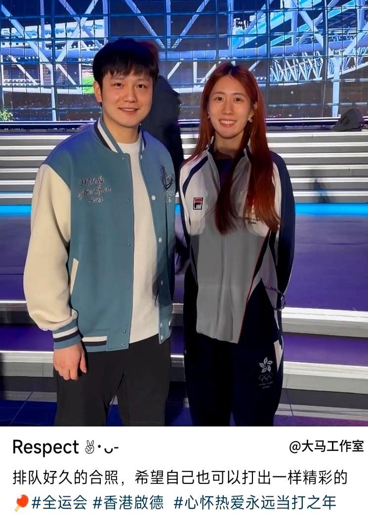 全运会刚落幕,朱成竹就直奔樊振东那儿求合影。 俩人早年可是一块在广东队练球的,这次樊振东刚拿下全运会十连胜,作为老熟人,朱成竹立马就过去找他了。 所以朱成竹才发文配了个“Respect”,他自己作为港队主力,最懂樊振东这实力意味着什么,这就是顶尖选手之间表达敬佩的方式。
