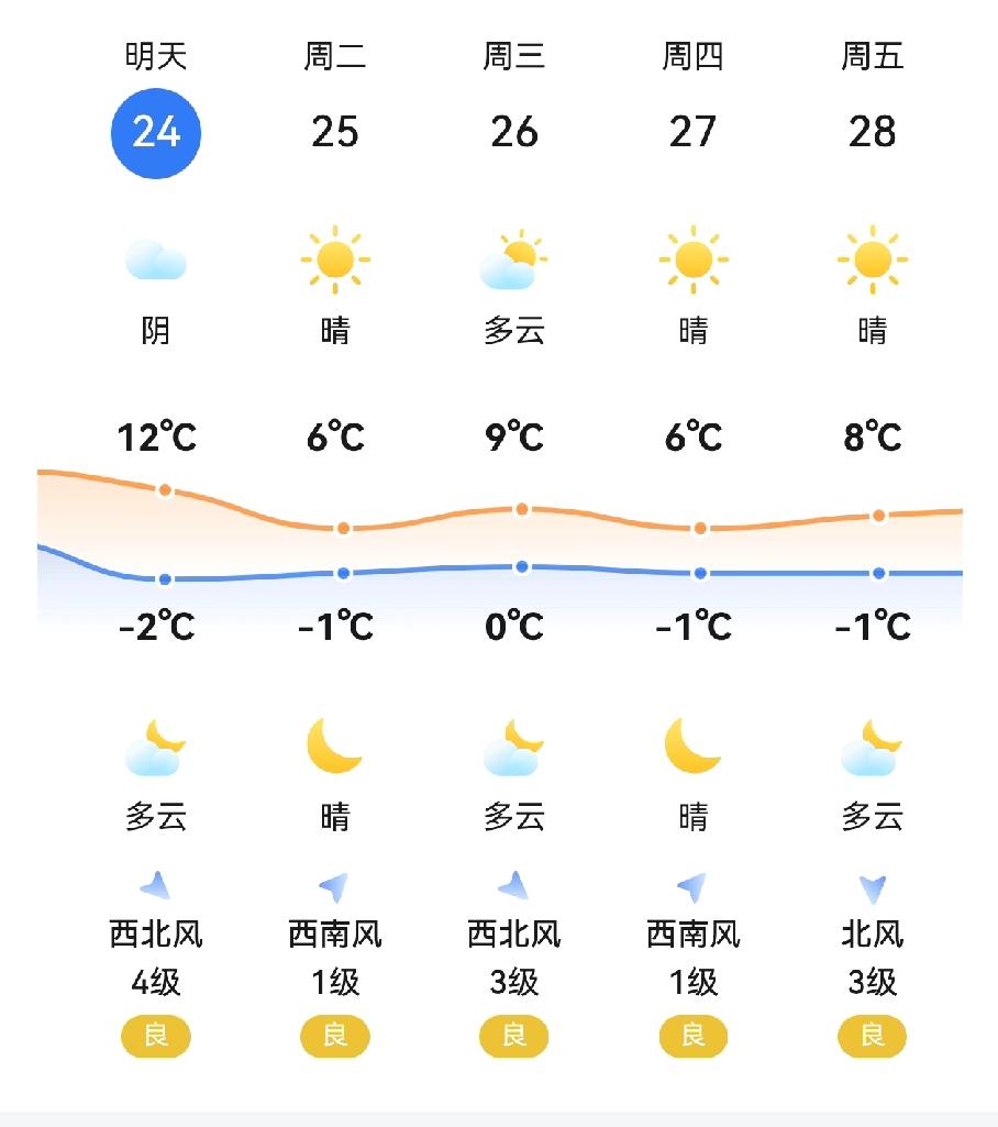 注意!断崖式降温又来!天津下周将有三波明显冷空气来袭,气温持续低迷!11月24日,伴随新一周的开始,第一波冷空气也将到货!虽然今天白天我市阳光充足,气温升更是达到了16.5℃,但这已是近期气温的最高点。明天第一波冷空气就将抵津,白天多云转阴,北部地区可能有零星小雨,风力逐渐增大至4~5级,阵风7~8级,最高气温将下降至12℃,夜间最低气温将跌至-2℃上下,北部地区低至-4℃。周二天空晴朗,微风,市区气温在7~0℃。周四(27号)前后,第二波冷空气杀到,白天有东北风4~5级,阵风6~7级,市区最高气温仅有6℃,最低气温降至-1℃。周后期还将有一波冷空气影响本市,风力再次增大,日最高气温在8~9℃,最低气温维持在冰点上下。请大家注意及时增添衣物,做好防寒保暖措施。天津 天津百姓身边事 天津下周气温持续低迷 下周冷空气频繁影响天津