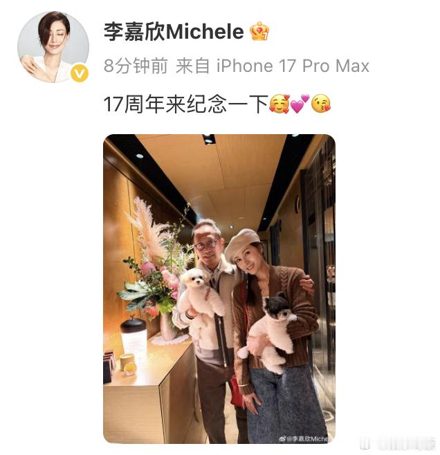 晒和老公合照,庆祝结婚17周年纪念日,好甜蜜