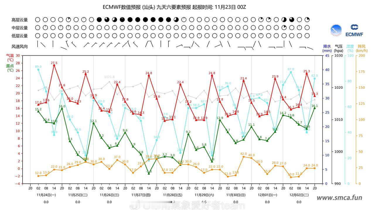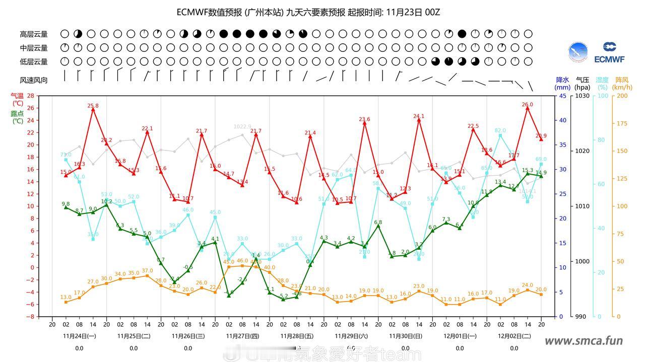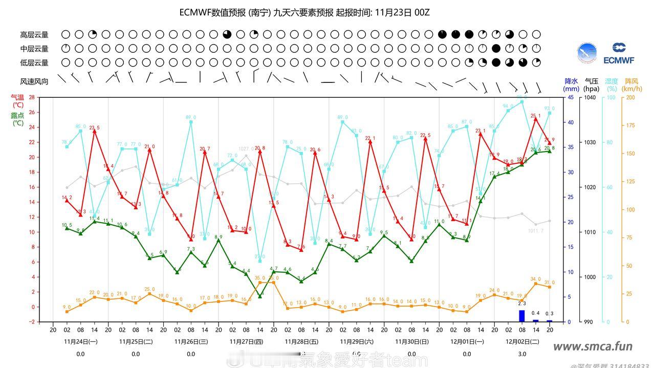 【准备回暖?弱冷补充来也】本周末寒潮的影响逐渐消减,各地午后回温速度较为明显,早晚阴凉。但是预计25号新一波弱冷空气将会持续影响华南三省,随后27~28号还有一波新弱冷空气继续补充,广东广西各地最低气温保持在8~14℃上下。这导致直至12月华南多地气温依旧保持较为干燥和阴冷,依旧需要厚衣服加持!