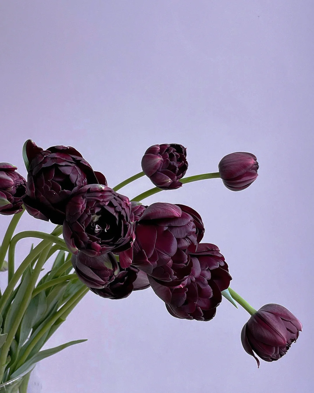 🔴⚫️特点:誉满全球,郁金香形态优雅柔美,种类繁多,被称为世界花后,成为代表时尚和国际化的一个符号, 并且成为了多国国花。紫红色的郁金香更显贵气。