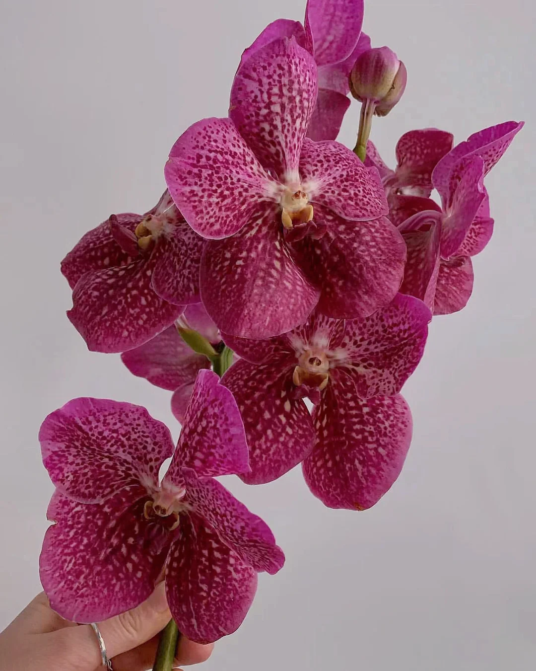 🟪🟪特点:万代兰是具有南国情调的洋兰。一支花茎上可开出几朵较大的花,雍容华贵,花姿优雅动人。常作为盆栽、吊挂装饰及切花供瓶插或其他花艺设计之用,为室内装饰的重要花材。