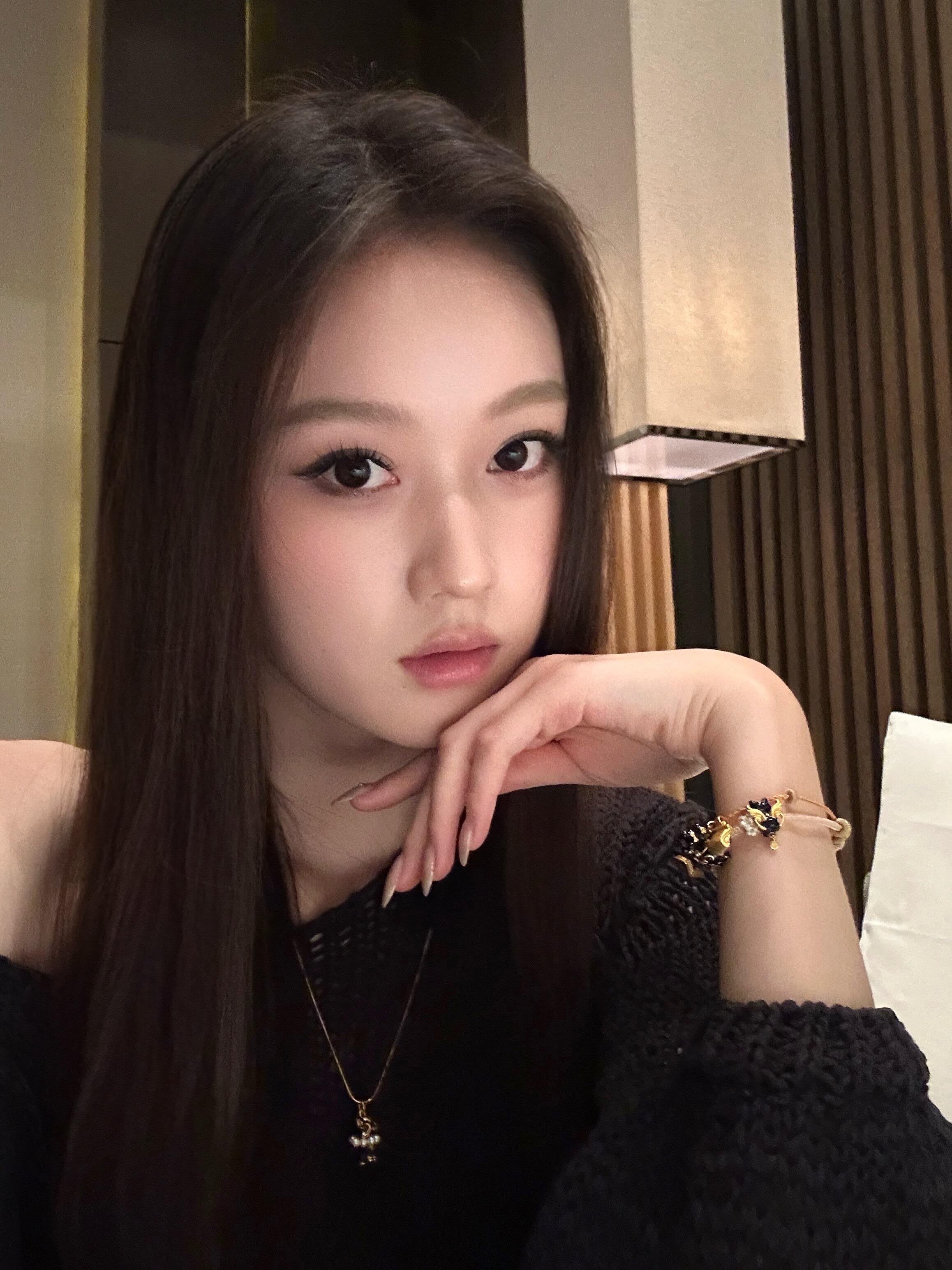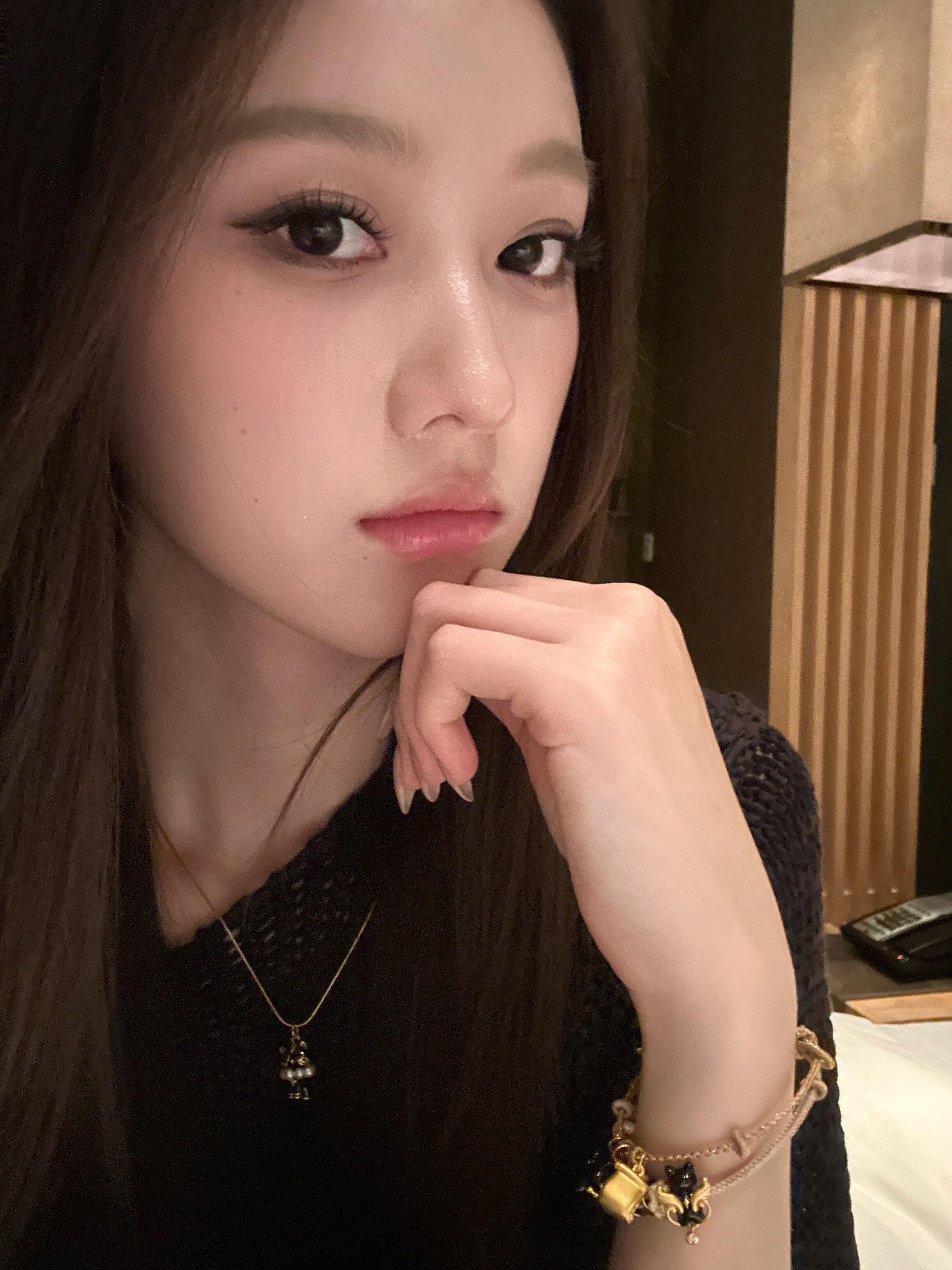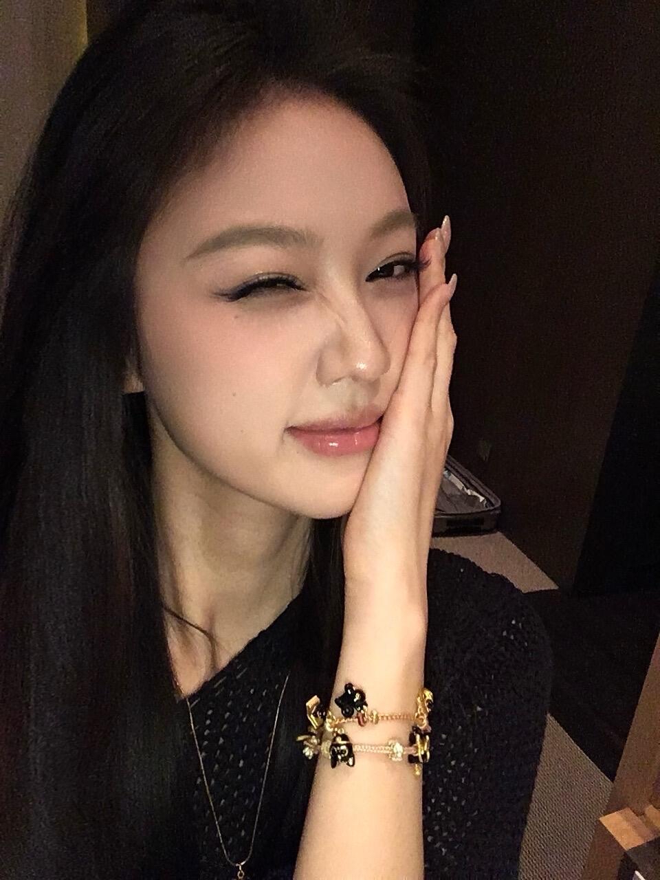 优雅黑裙,精致妆容,沉静气质,都市女性风范。