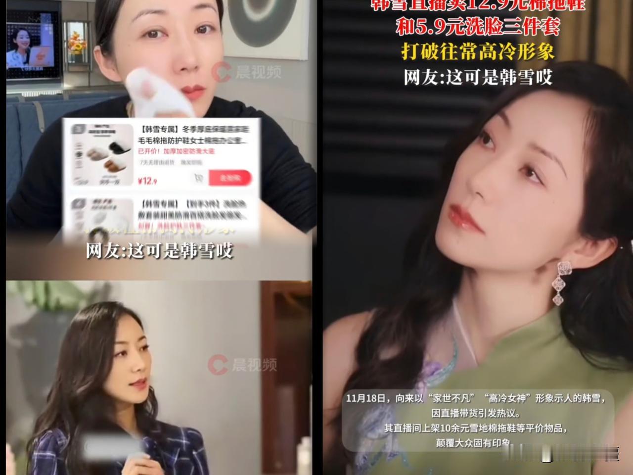 7. 5.9元洗脸巾卖疯了! 韩雪转战直播的背后,是影视行业的大环境寒冬? 有数据显示,近两年来影视行业受多种因素影响,市场环境不太乐观,新剧项目减少,演员的拍戏机会也随之降低。韩雪可能也受到了这种大环境的冲击,拍戏机会没以前那么多了,所以才转战直播领域。 从直播带货的数据来看,低价商品虽然单件佣金不高,但受众范围广,销量往往比较可观。像5.9元的洗脸巾和12.9元的棉拖,购买的人多了,总体的收益也不会太差,这或许是韩雪选择带这类商品的原因之一。 娱乐圈更新换代很快,年轻演员不断涌现,竞争十分激烈。韩雪以前挑剔剧本,对流量看不上眼,可现在市场变了,要是还坚持以往的态度,可能就更难有合适的戏可拍了。 直播带货行业发展迅速,也是当下的热门趋势。它的灵活性和潜在收益对很多明星都有吸引力,韩雪或许也是看中了这一点,才投身其中。