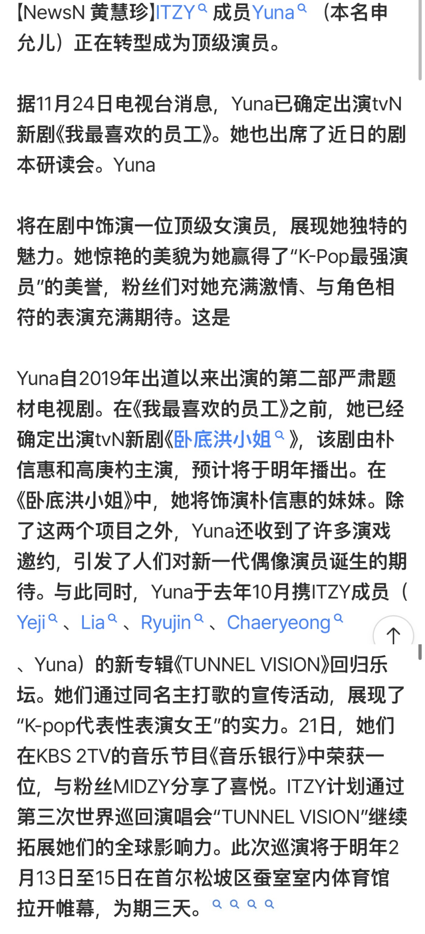 申有娜确认出演tvN新剧《最爱的职员》,剧中饰演顶级女演员,展现独特魅力,她还参加了最近进行的剧本围读。此外,申有娜还收到许多演戏邀约,引发新一代偶像演员的期待