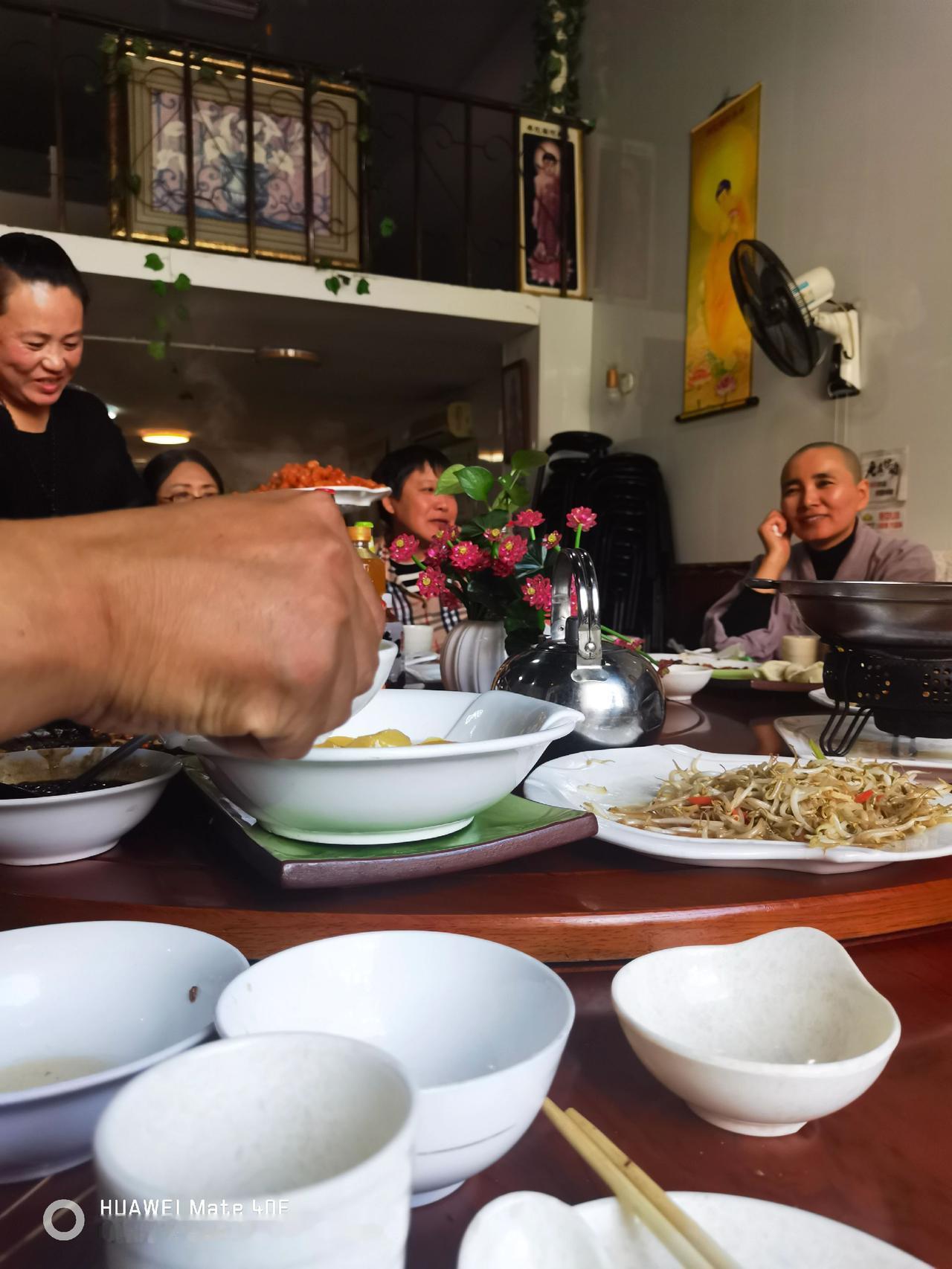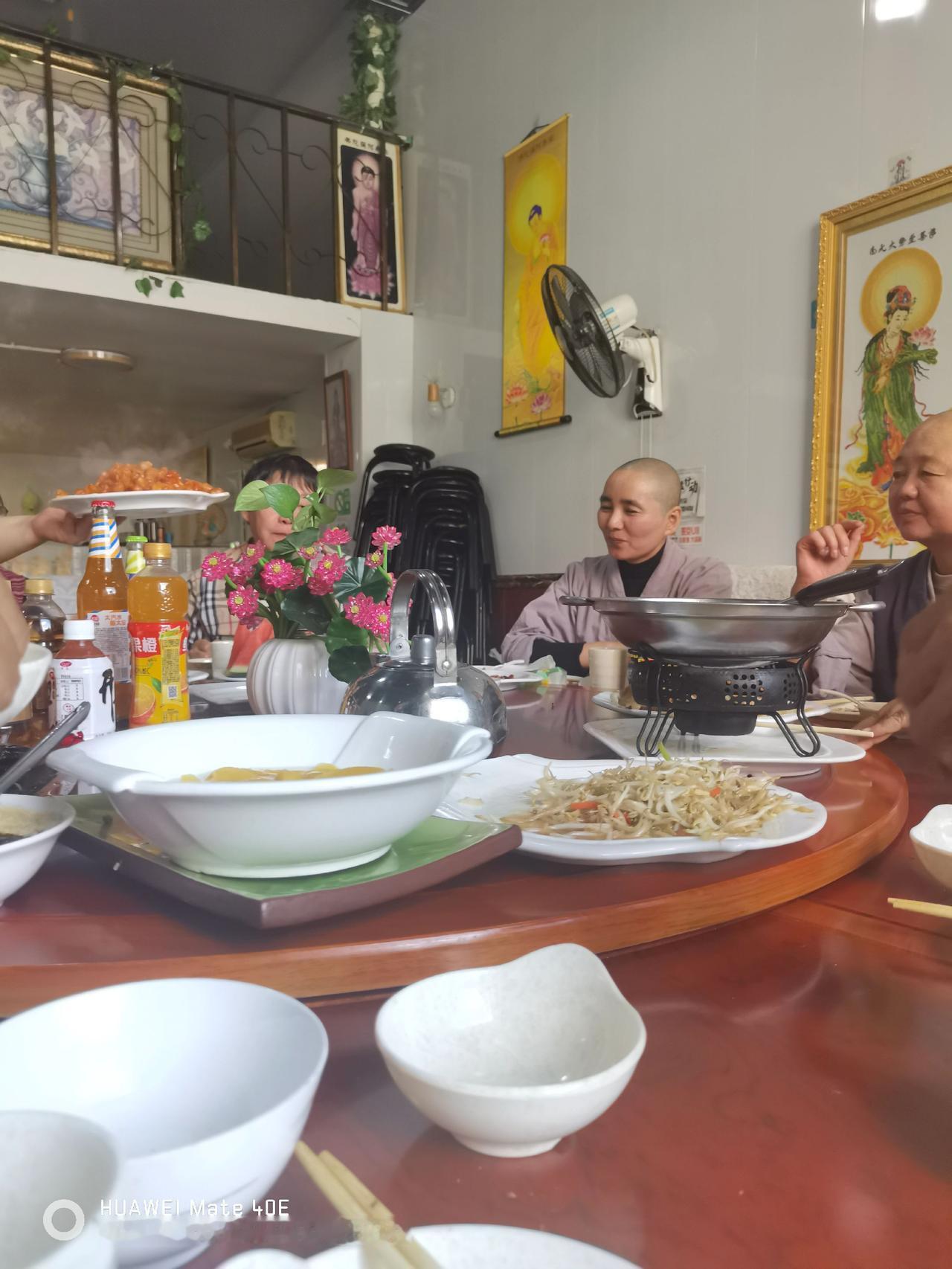 強子和英子給大家接風,請我們吃素食大餐,地點在《千音素餐廳》。時間2024年9月