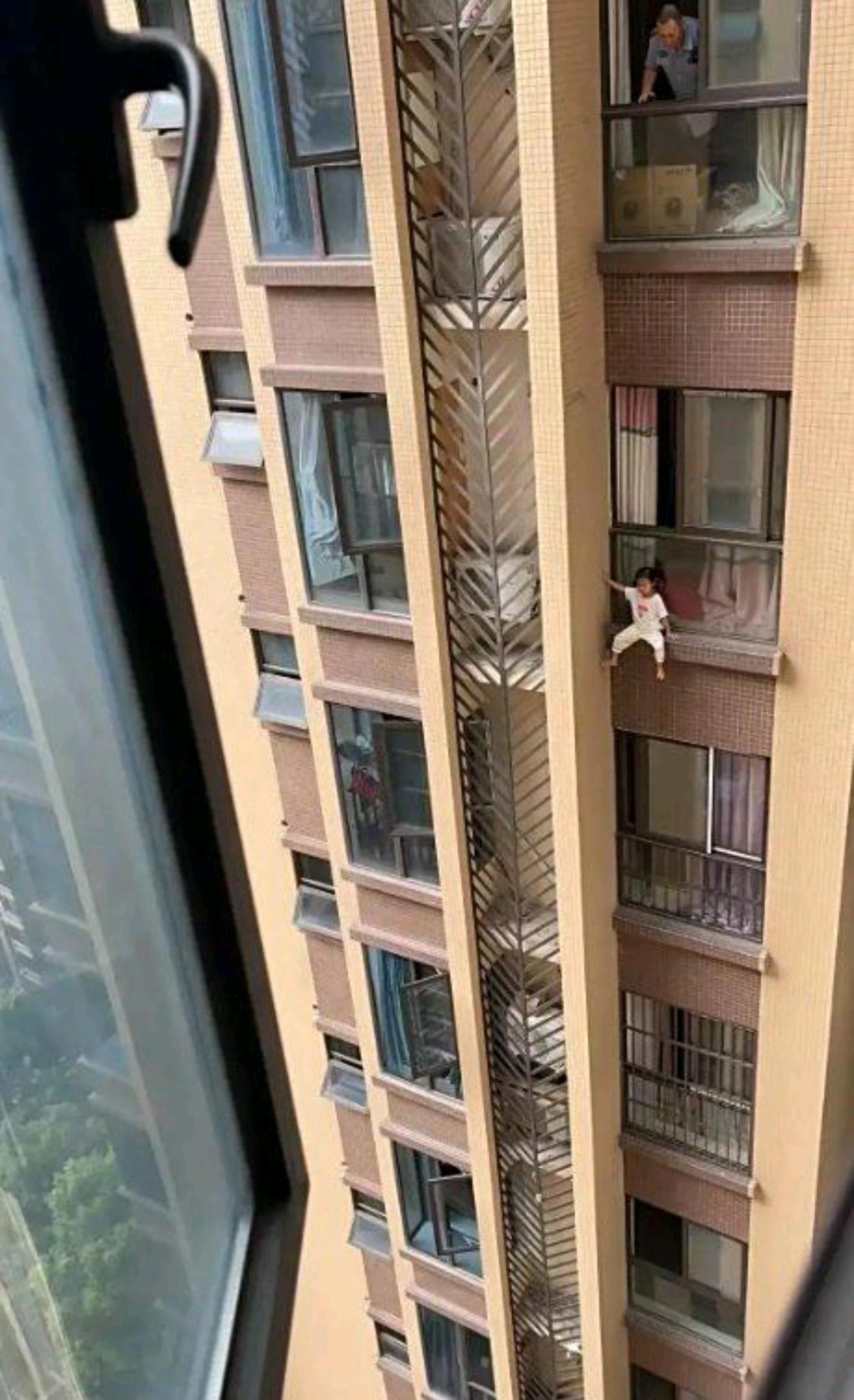“惊险一幕!小孩悬挂在高楼外,家长心急如焚!”😱🏙️👶