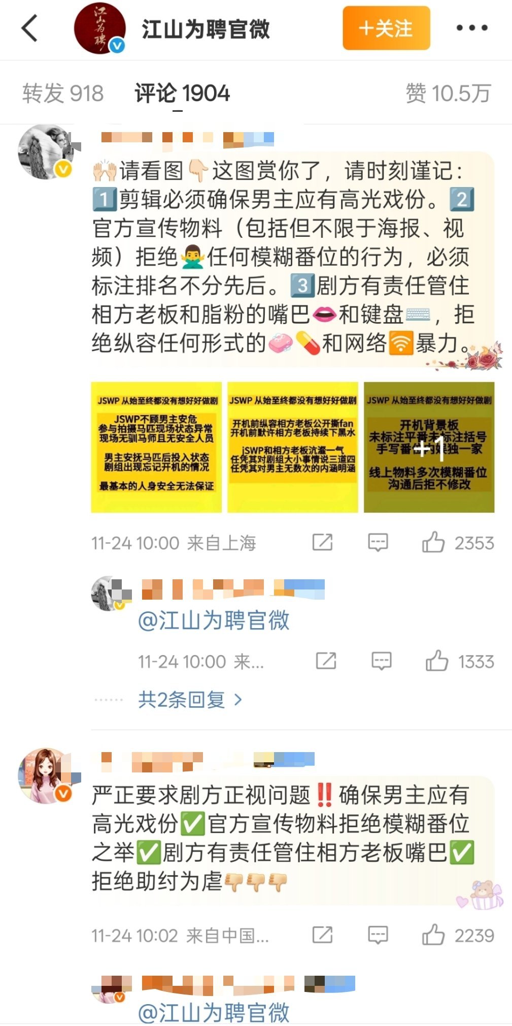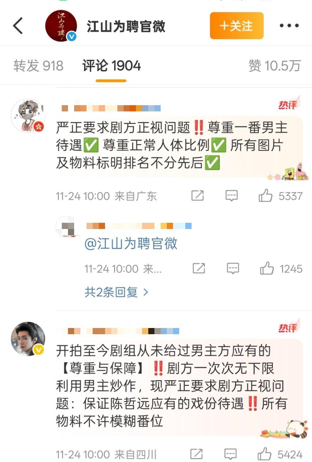 陈哲远粉丝江山为聘杀青博的评论区团建