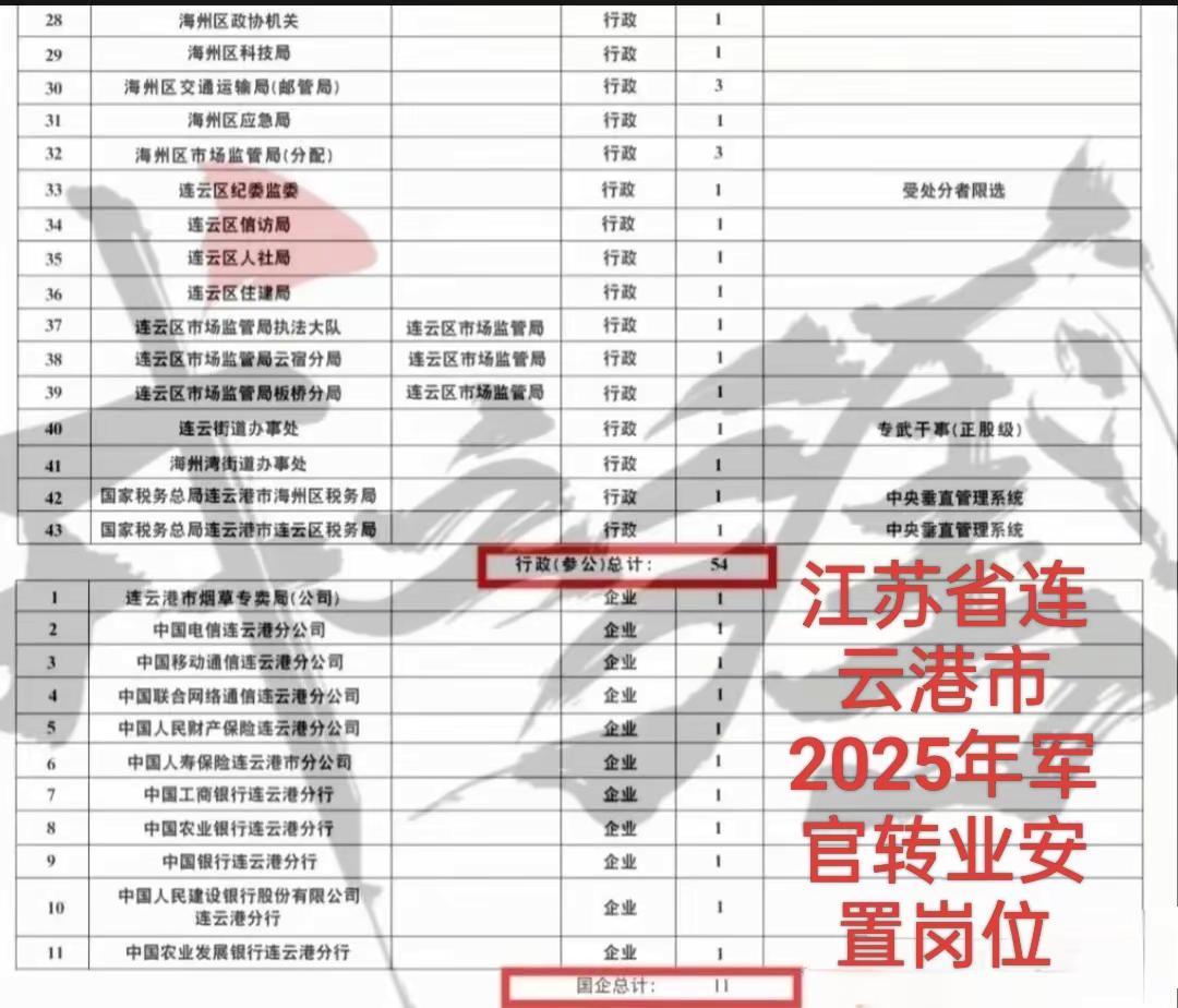 2【江苏省连云港市】2025年军官转业安置岗位公示