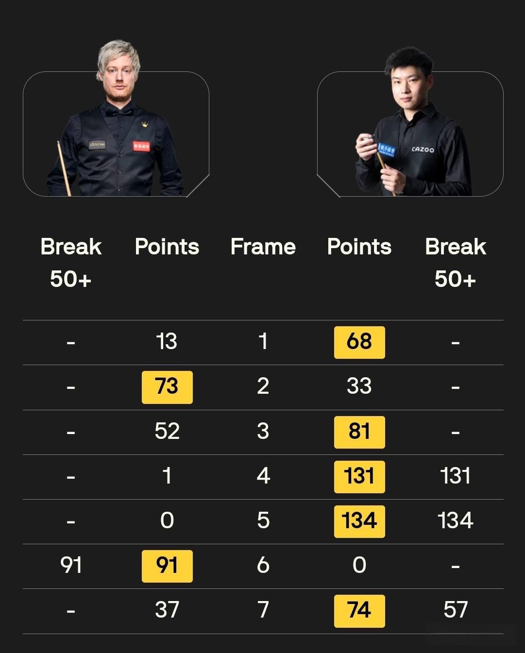 赵心童4次打进决赛,从来没有陷入比分紧咬的苦战状态,每次都能大比分获胜。10:5小和尚,9:0颜丙涛,18:12马叔,5:2萝卜。 说明在决赛里赵心童的心态调整得甚至比其他时候还要放松,除了技战术因素,这种顶尖球员到了决赛更多的就是拼心理素质和抗压能力。 冠亚军奖金差着上百万,可能就是一颗关键球的事,说实话谁都会紧张。谁能稳住手不抖,脑子不乱,谁就能撑到最后。