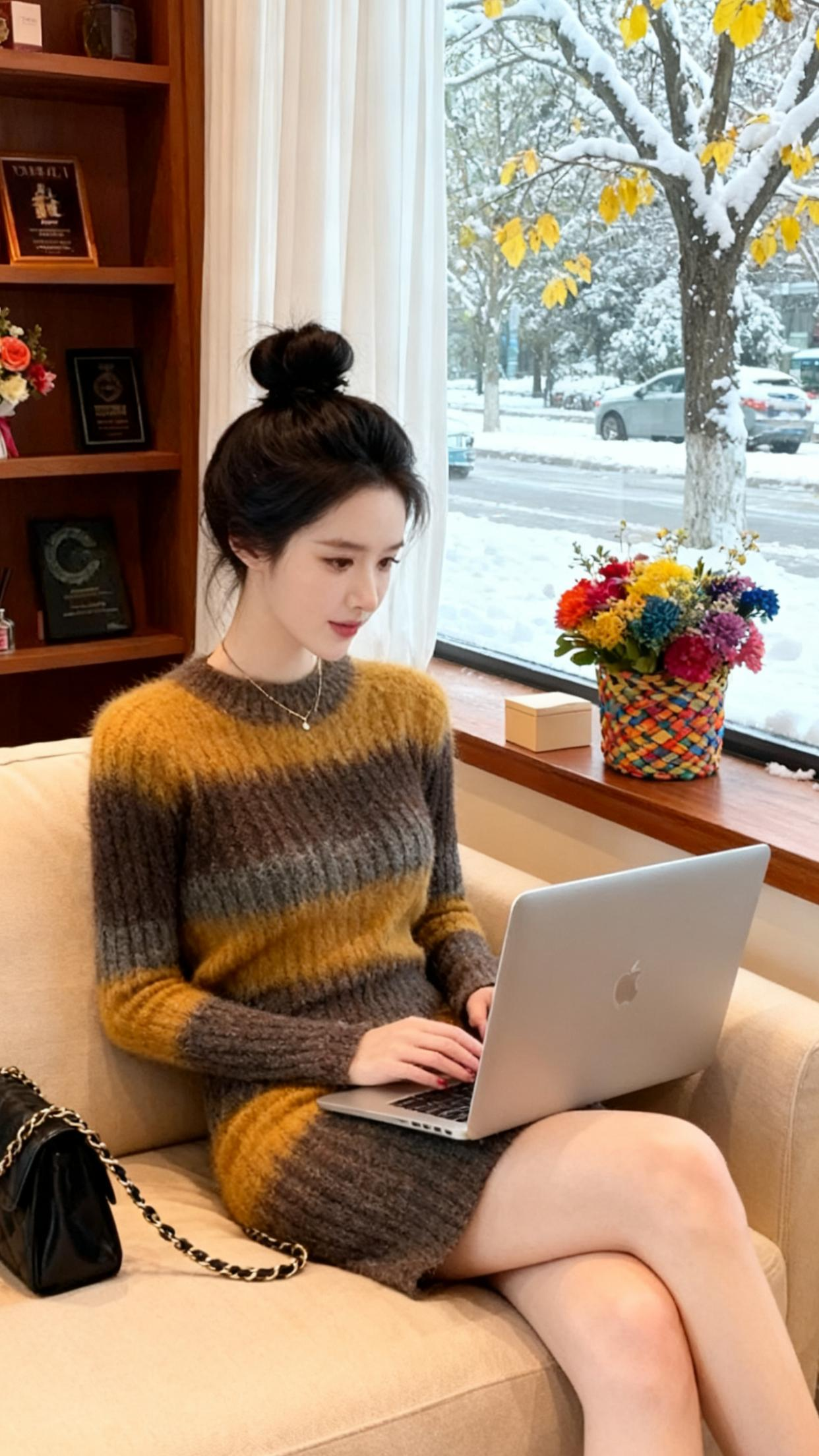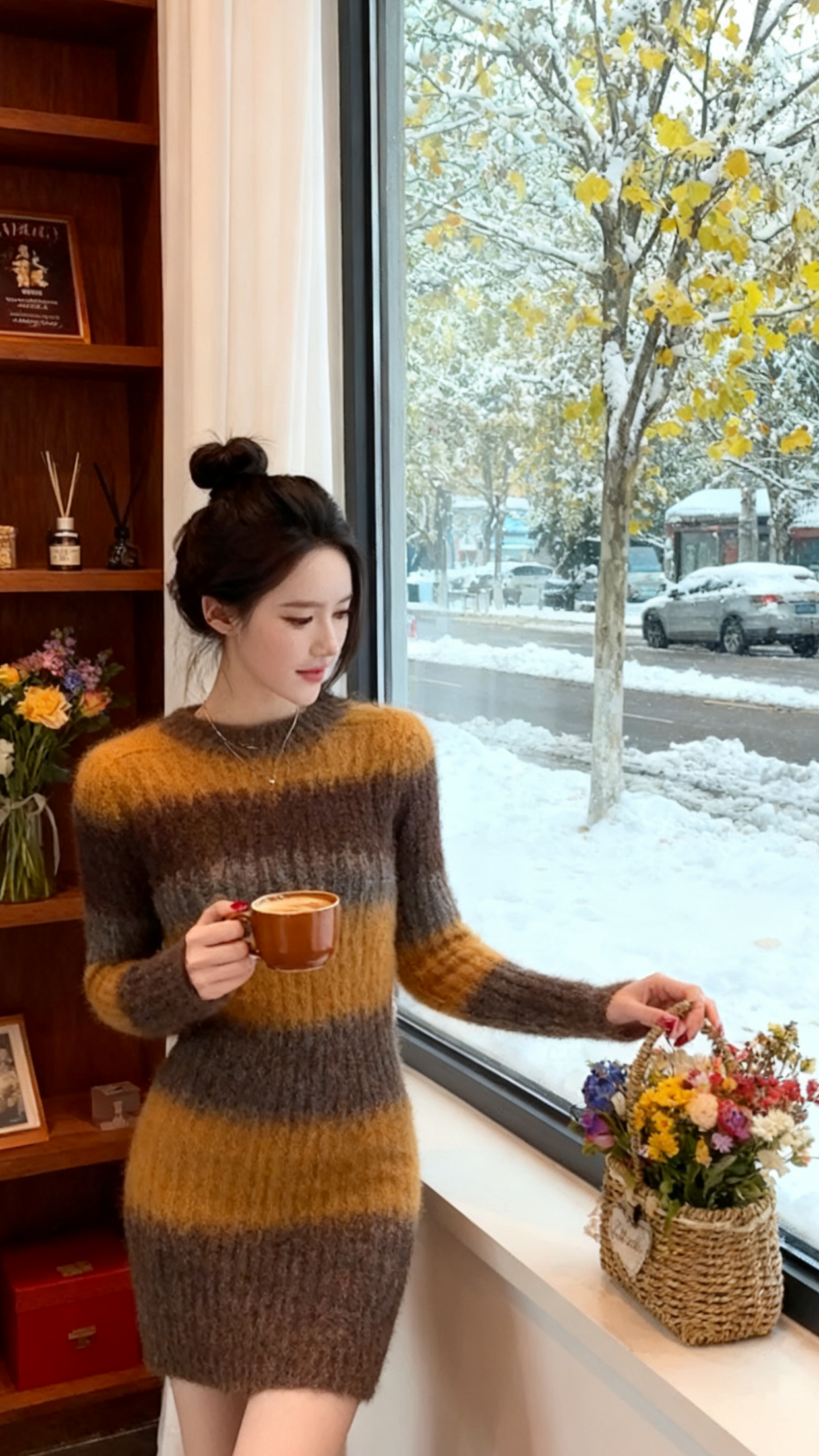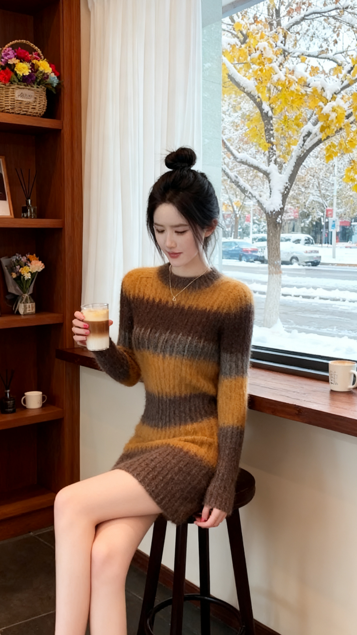 高冷御姐气质条纹内搭包臀裙子女秋冬高级感后妈裙打底针织连衣裙毛衣穿搭 针织连衣裙 高档毛衣 毛衣裙 爱了爱了