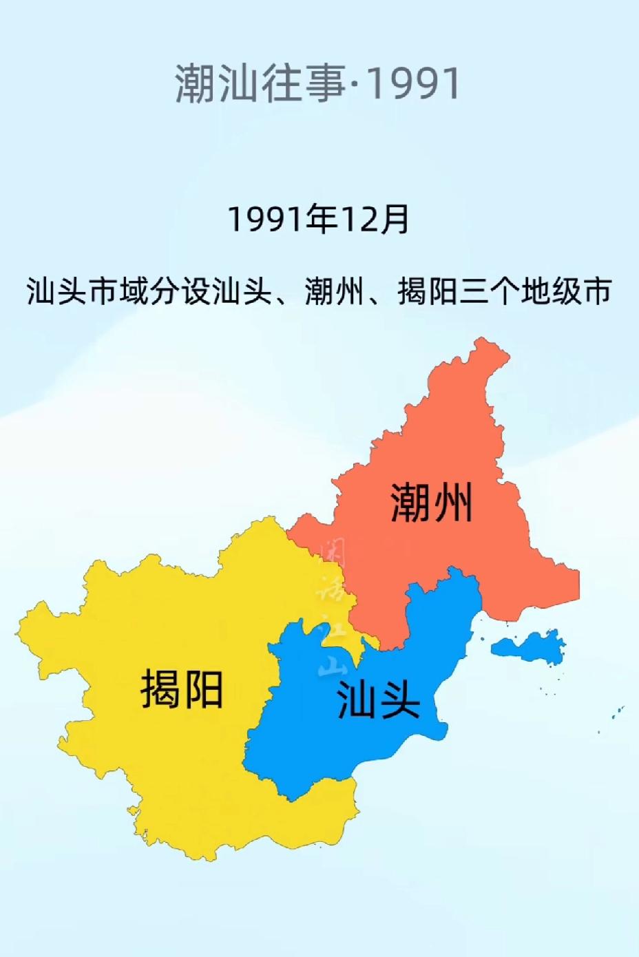 公元1991年12月至今已经34年过去了。 广东省揭阳市地理位置。 广东省潮州市地理位置。 广东省汕头市地理位置。 34年来,三市各自规划建设发展成果一目了然。 三市各自的成就举世瞩目!