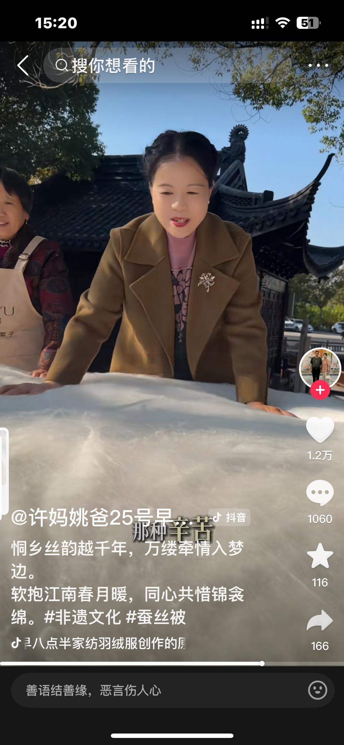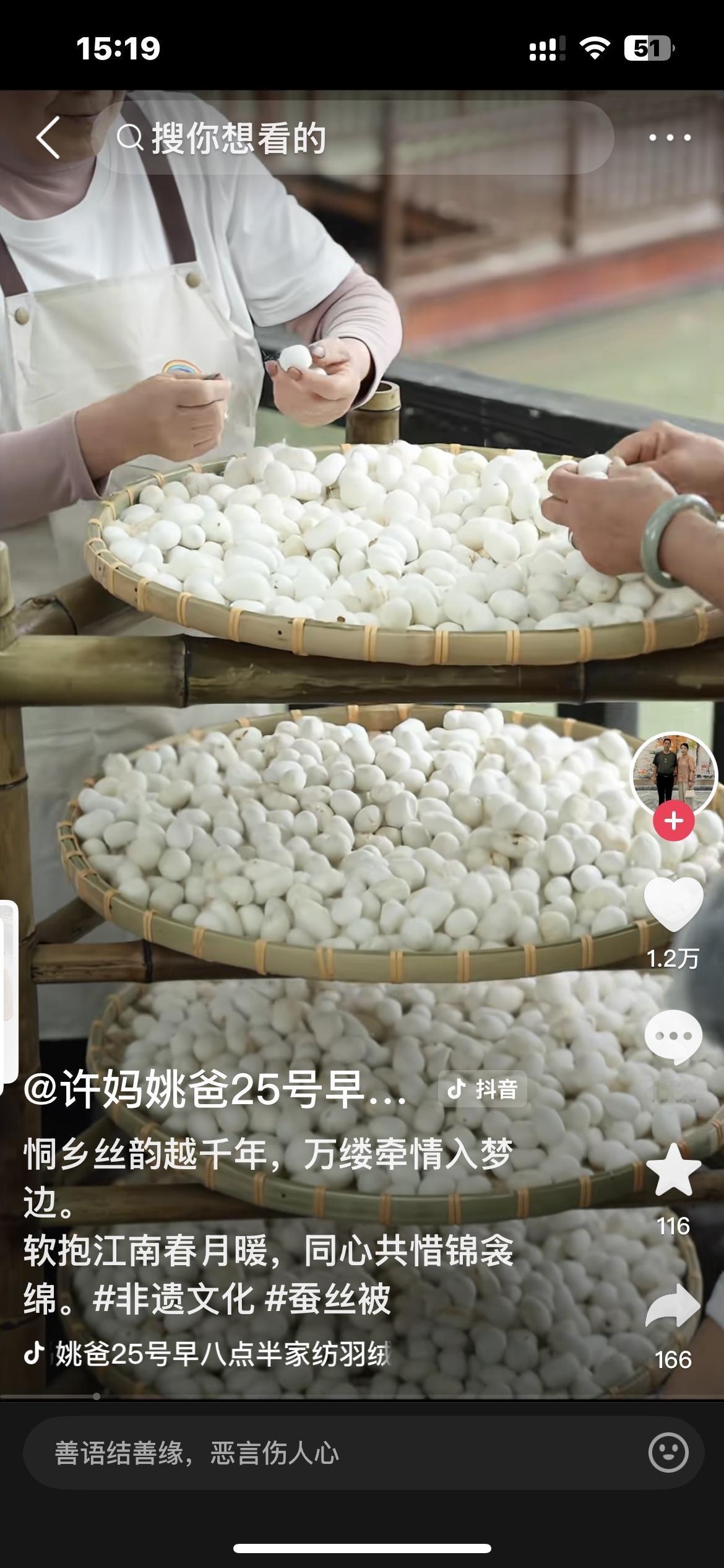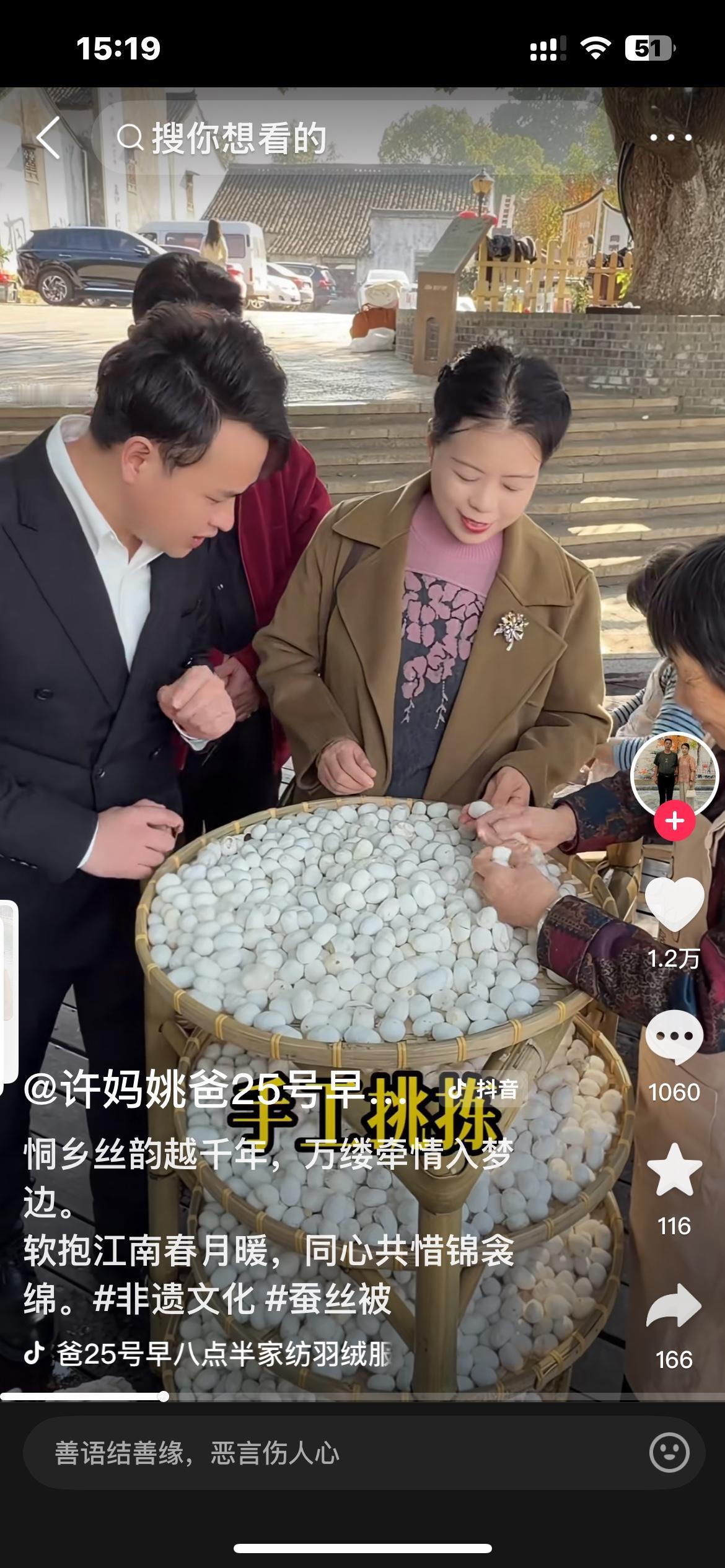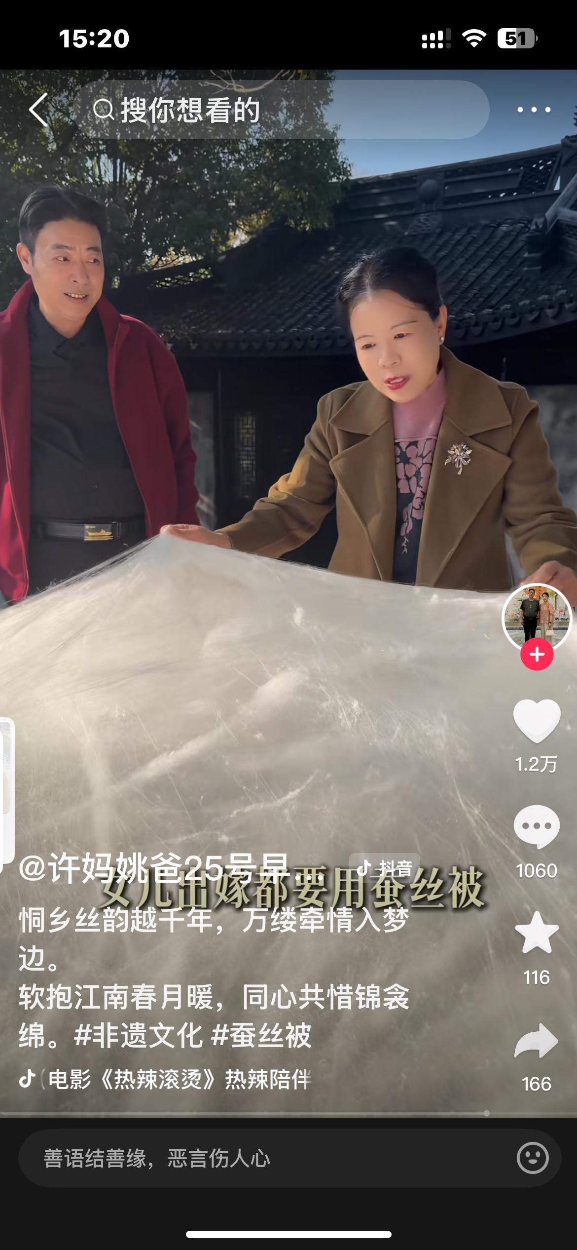 许妈姚爸25号(明天)一大早在浙江开播,带货家纺…… 有桐乡正宗的蚕丝被哟,需要的准时蹲一波
