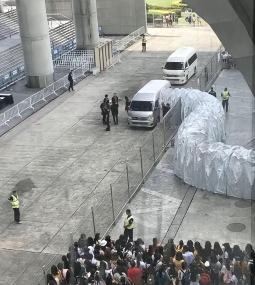 韩流偶像赴泰国开唱 为防粉丝竟搭建金钟罩 这是KCON 2018 THAILAND在泰国开唱,众多韩流偶像将登台。 场外汇集大批粉丝,为防止偷拍,主办方想出“奇招”,从保姆车到场馆的距离设置“金钟罩”蠕虫式的通道,这个真是绝了。因为在外面的粉丝什么也没看到。