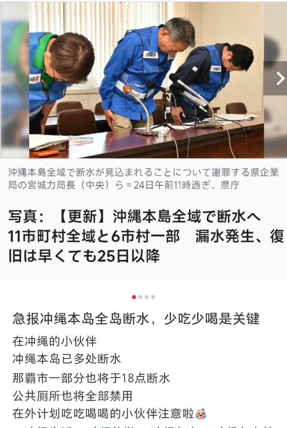 琉球早不断水,晚不断水,偏偏这几天断水。日本这个是在敲打琉球吗?