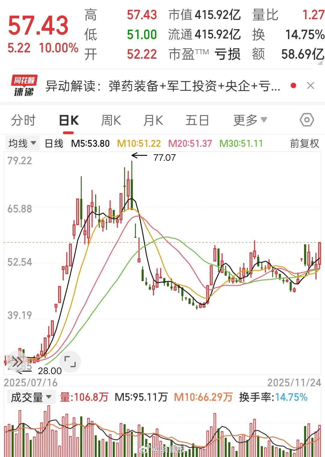 直接封死涨停,长城太炸了!可能是王者归来?核心逻辑,可能是央企重组预期托底,作为兵装集团唯一弹药上市平台,资产注入的想象空间可能拉满?加上军军板块今天逆势领涨,它本身订单爆单,国内外大单不断,业绩也在扭亏改善。资金从高位赛道跑来抄底,放量封板超坚决。这波可能会是题材炒作反弹,还是价值回归呢?
