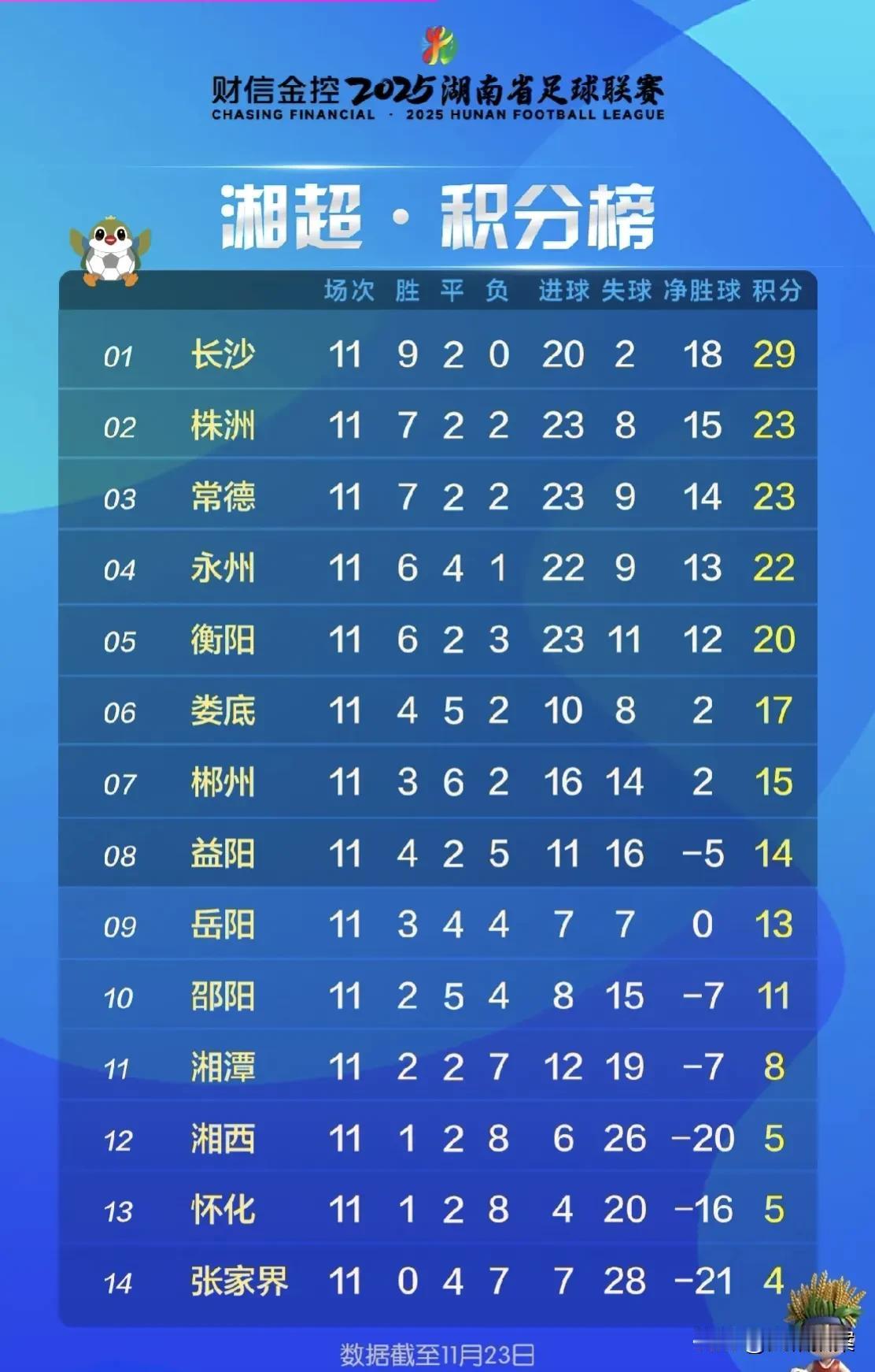 湘超还剩最后两轮常规赛,然后就要进入淘汰赛阶段。长沙、株洲、常德、永州、衡阳、娄底已经锁定前八强,还剩郴州、益阳、岳阳、邵阳四支球队争夺最后两个八强名额。 这四支球队中,郴州和岳阳机会比较大。益阳和邵阳几乎很难出线了,一个是后面两场对手太强,不敢说全部拿下,其次就是净胜球太少,想要刷净胜球已经没啥机会了。湘超足球 湖南湘超联赛 永州湘超足球 湘超比赛 湘超赛程