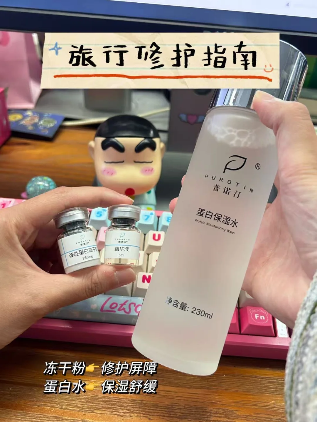 这次出去玩嗨了,但是川西真的好晒🌞 肌肤也累垮了,晒后泛🔴、干燥粗糙 朋友推荐普诺汀蛋白水+冻干粉 本来是抱着试一试的心态,结果用完真香! 冻干粉👉深层修复屏障 蛋白水👉保湿舒缓 冻干粉+蛋白水组合太顶了 step1 洗完脸后先用蛋白水轻拍至吸收 step2 将兑好的蛋白粉冻干精华涂于面部 (PS:不是我吹,它真的是秒吸收,涂完之后真的明显感觉面部的灼痛感减缓了很多) 连用三天,晒后问题退!退!退!