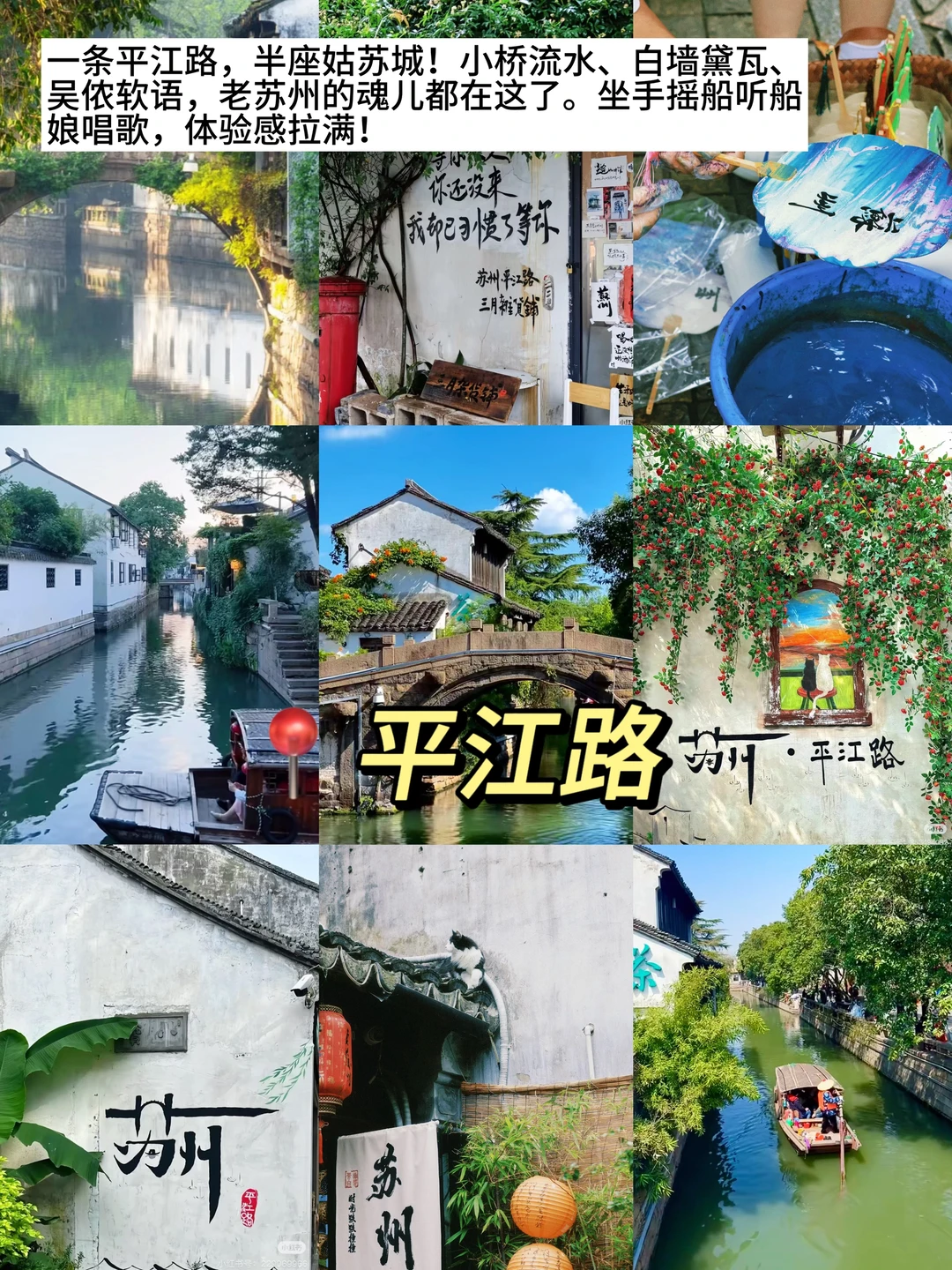 2️⃣平江路:一条平江路,半座姑苏城!小桥流水、白墙黛瓦,老苏州的魂儿都在这了。坐手摇船听船娘唱歌,体验感拉满!