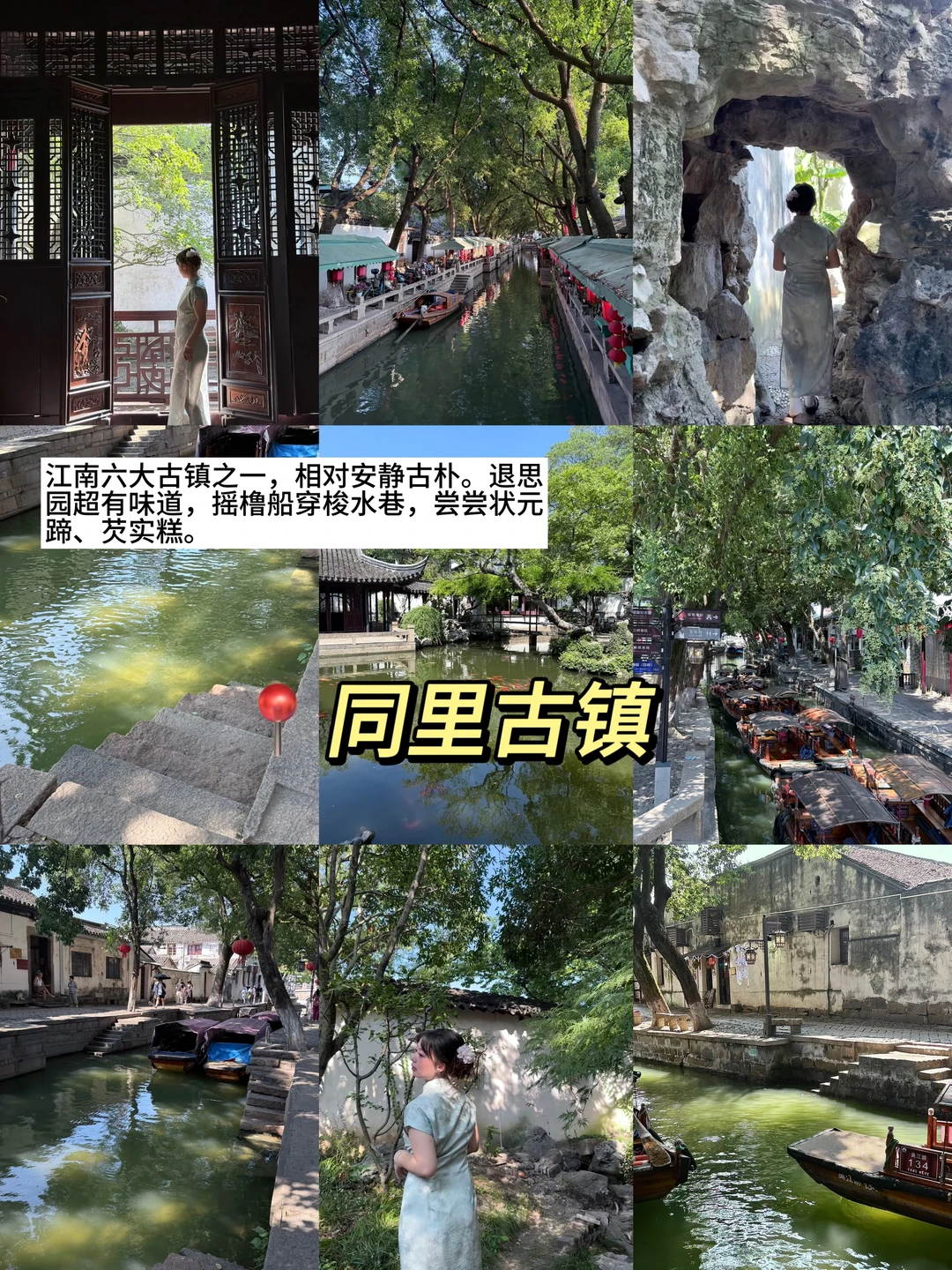 🔟同里古镇:江南六大古镇之一,相对安静古朴。退思园超有味道,摇橹船穿梭水巷,尝尝状元蹄、芡实糕。