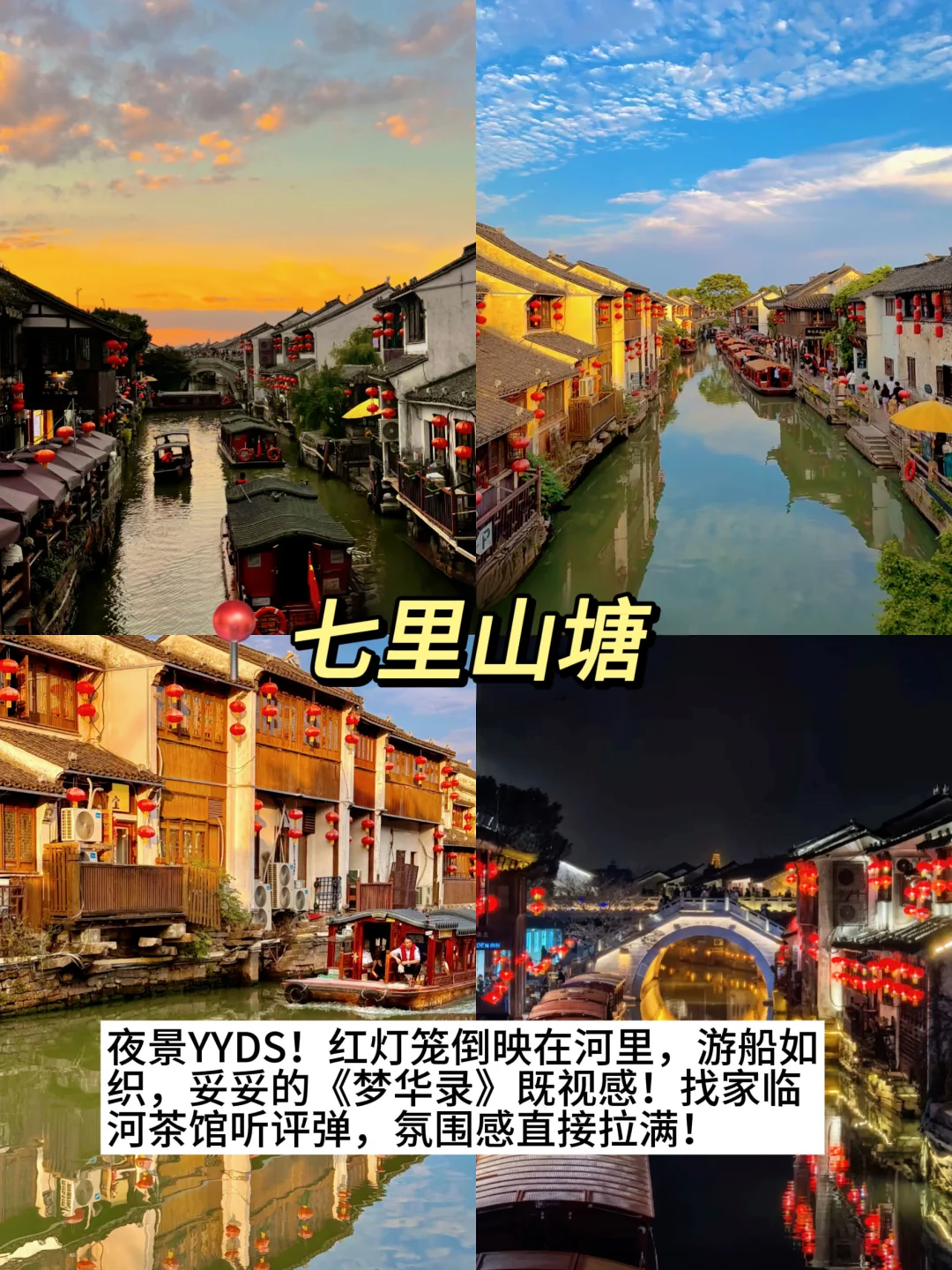 5️⃣七里山塘(夜游!):🏮夜景YYDS!红灯笼倒映在河里,游船如织,妥妥的《梦华录》既视感!