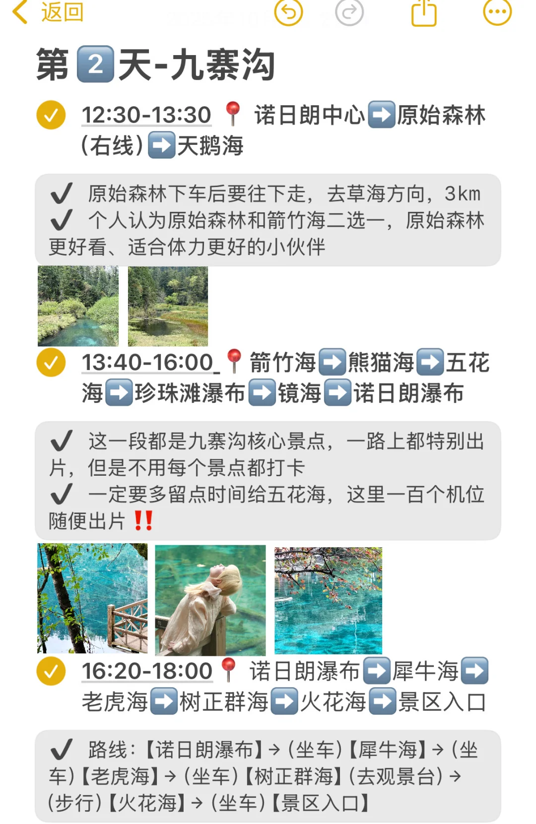2️⃣比较推荐的景点:五花海、五彩池、珍珠滩瀑布、长海森林到天鹅湖那一段、犀牛海🌟🌟🌟🌟🌟