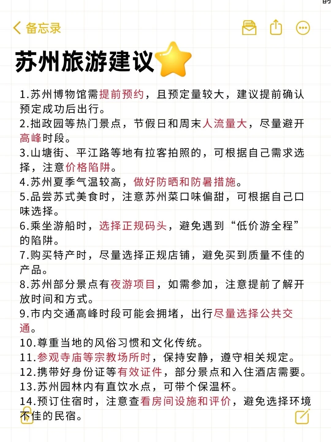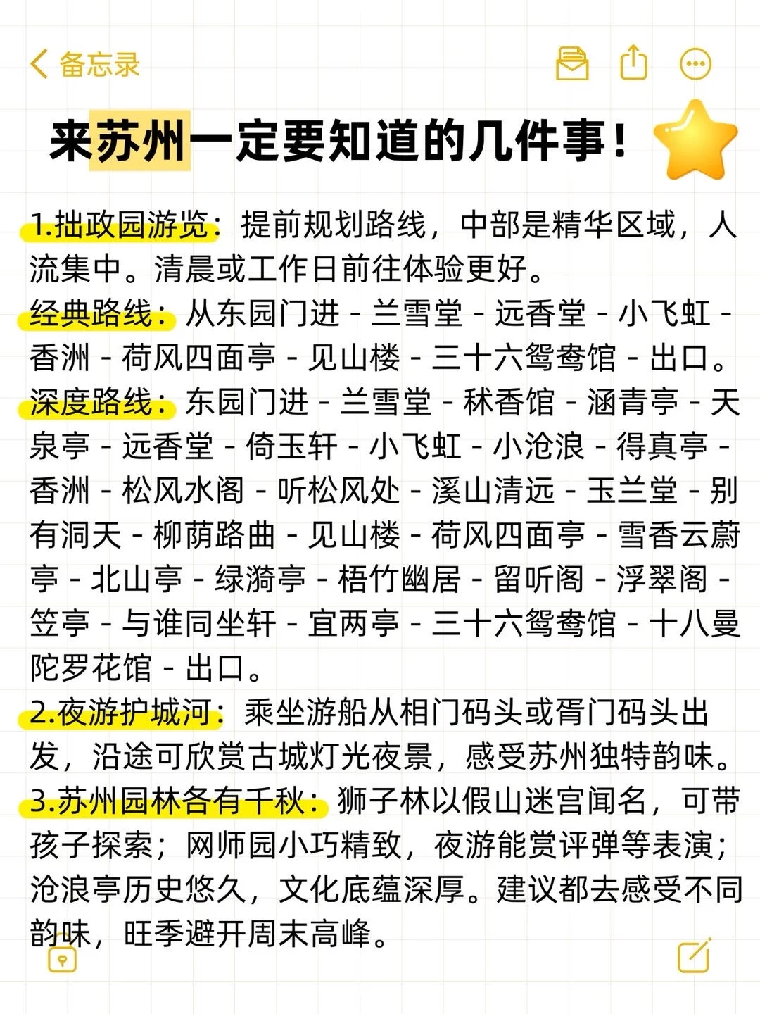 苏州景点不多,但是路线一定要安排好,省时省力,玩的开心!!还有很多要避雷,建议收藏✅包含了热门景点、旅游建议、交通、住宿、美食等等