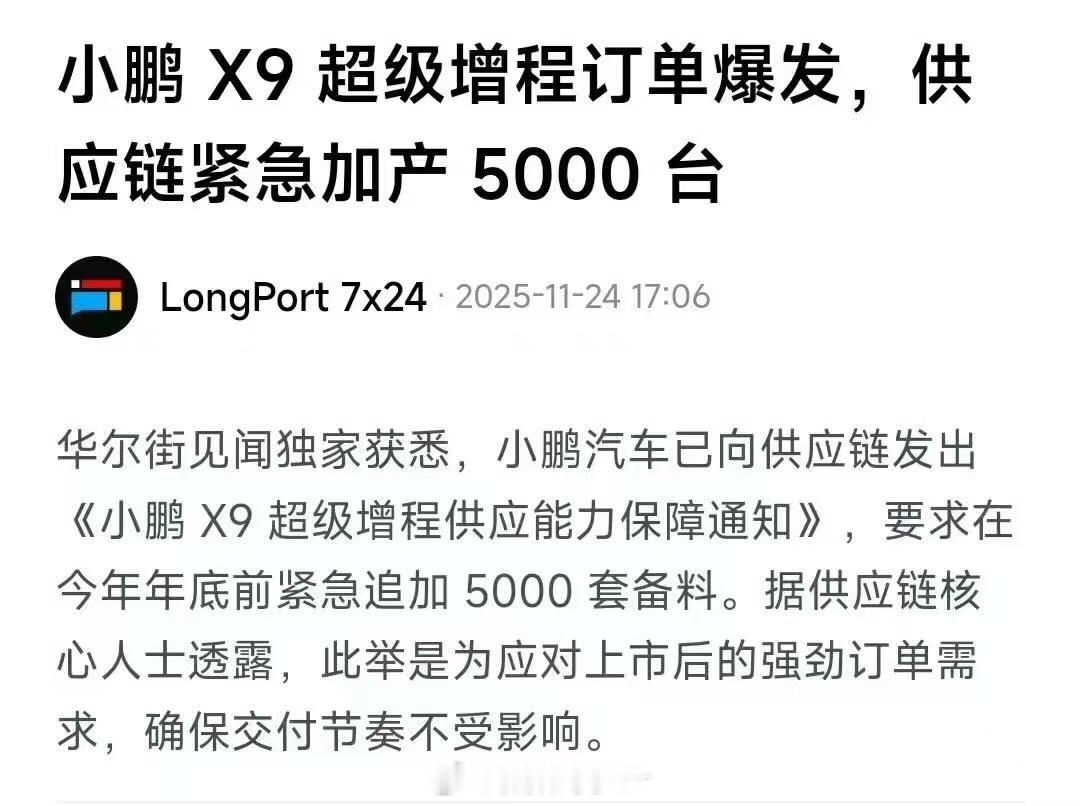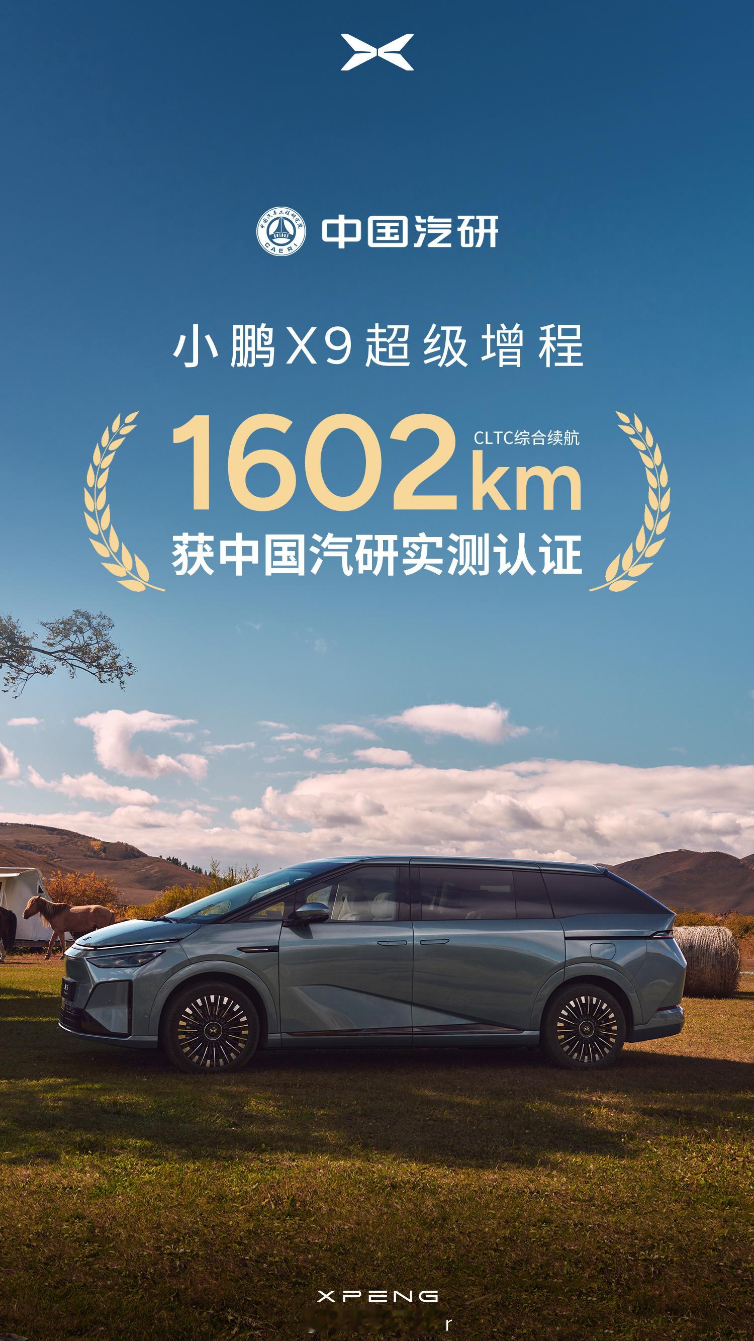 小鹏X9超级增程,1602km综合续航通过中国汽研实测认证!十年三电的技术积累,让小鹏在能耗控制方面做到极致,定义“下一代增程” 在易车实测中,63.3度超快充电池与60L油箱的黄金组合,在120km/h时速等严苛条件下,以937.5km续航登顶高环续航榜榜首!展现“全球综合续航最长大七座”的硬实力! 全面的产品力,上市即热销,发布会当晚1小时大定便打破小鹏X9历史全天纪录,部分门店单店订单突破100台,试驾排程已到一周后👏