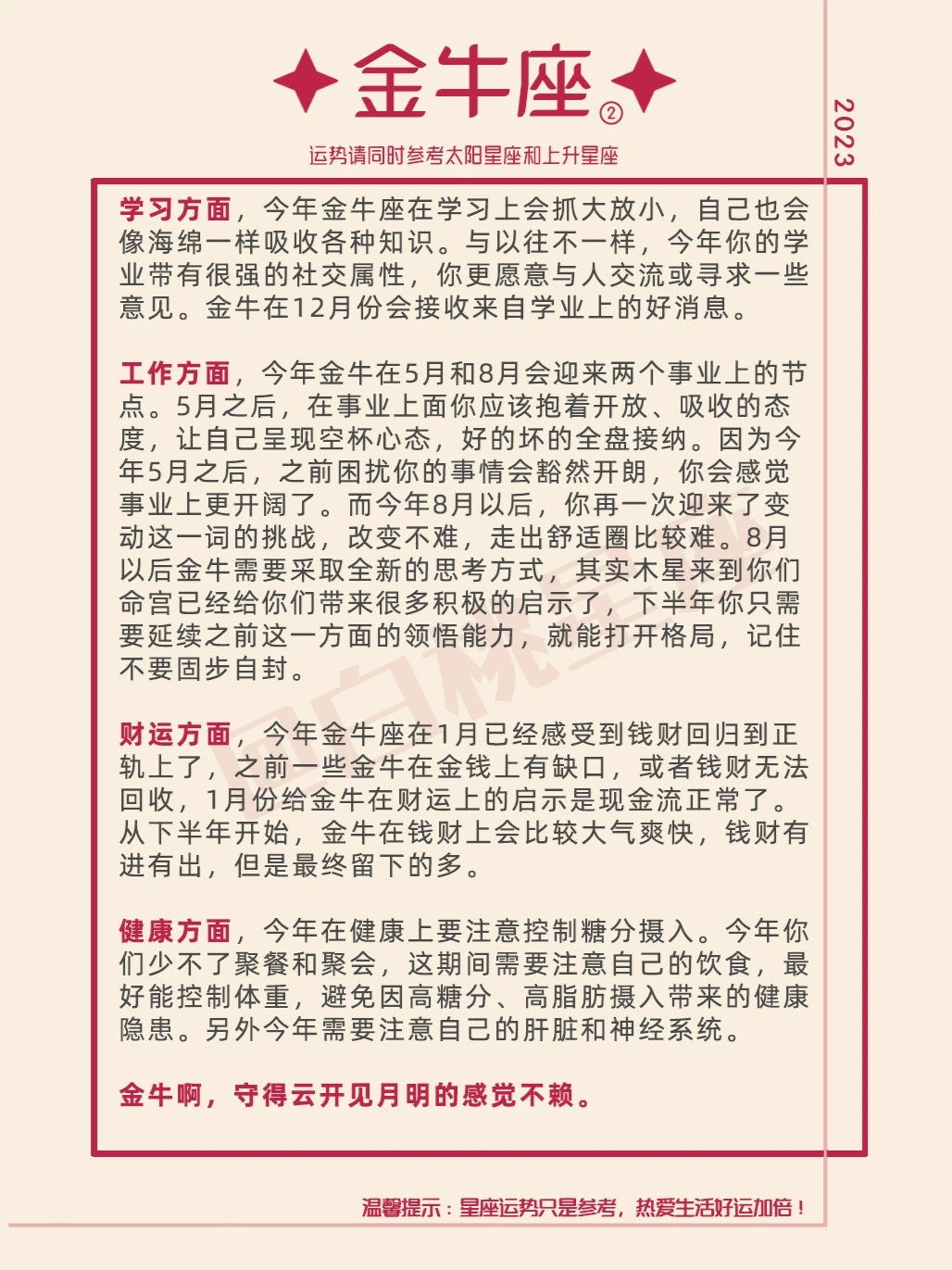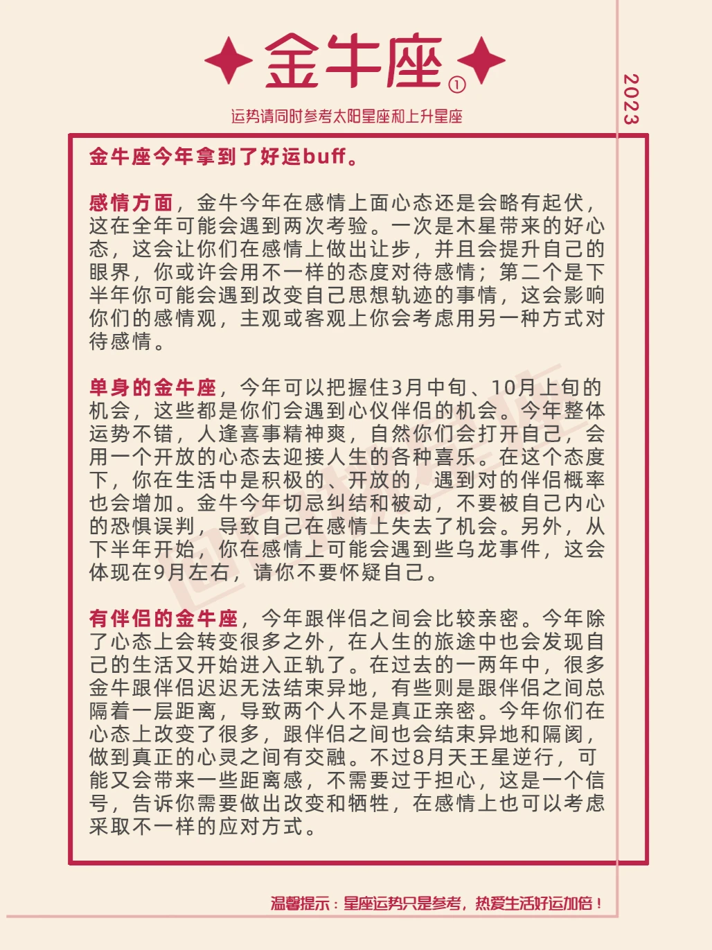 『白桃星座』金牛座2023年运