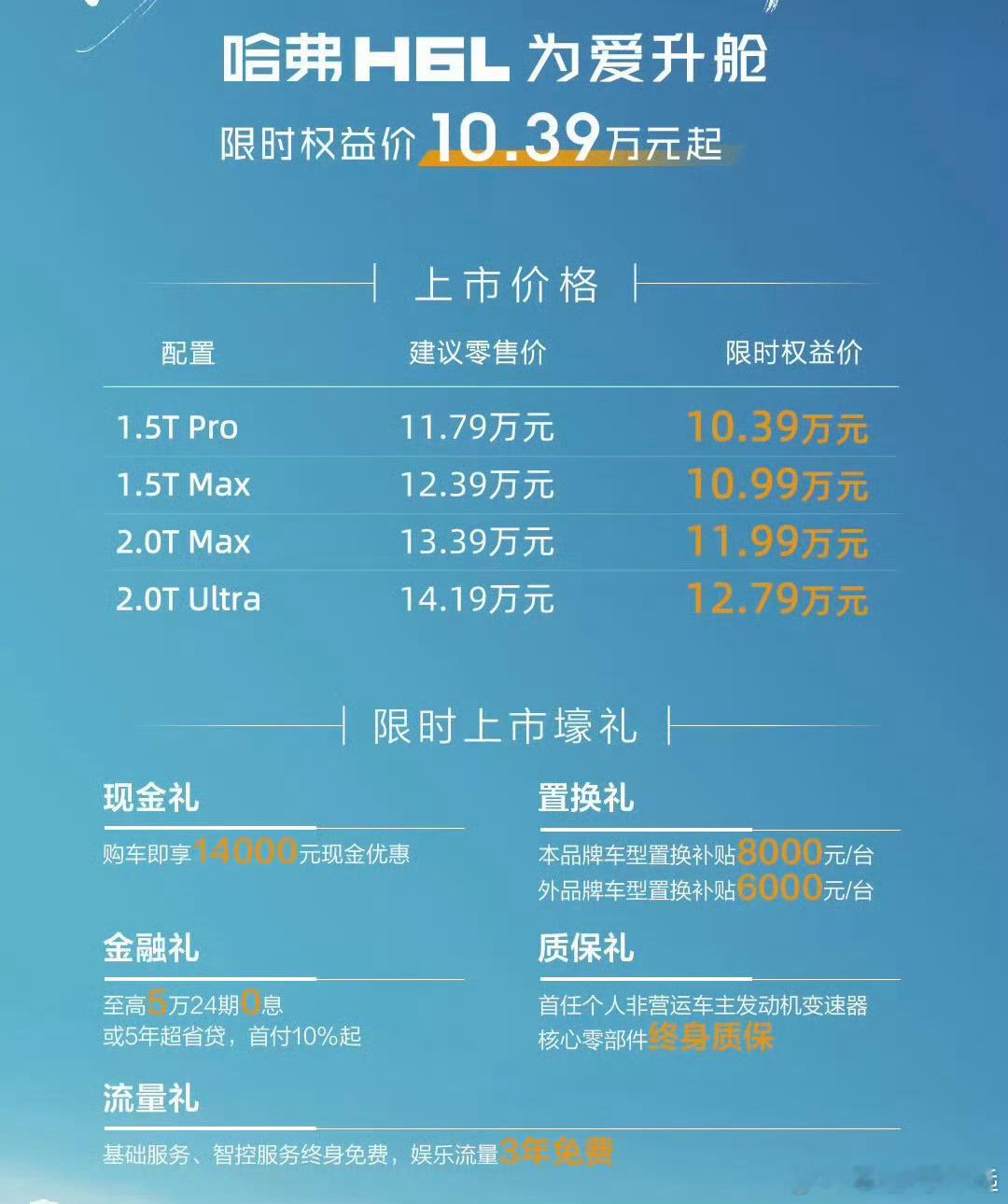 最近10万出头预算想买燃油SUV的朋友们可以看看刚刚上市的哈弗H6L。1.5T配7速双离合,WLTC综合油耗6.89,限时10.39万起。2.0T配9速双离合,238匹马力,限时11.99万起。让我比较意外的是2.0T版12.79万起就能拿下了,长城是真敢定价!而且这回它是真的省油,9DCT变速箱比8AT还平顺省油,高速120码转速才1800,7.4L百公里油耗,每公里才5毛钱,比很多混动SUV的馈电油耗还低。H哈弗主打的智能和安全这车也安排到位了,200多种车位30秒自动泊车,成功率98%,新手也能秒变老司机;82%高强度钢车身+全框式副车架,L2级智驾护航,全家出行踏实。年底买车的朋友们可以到店试试