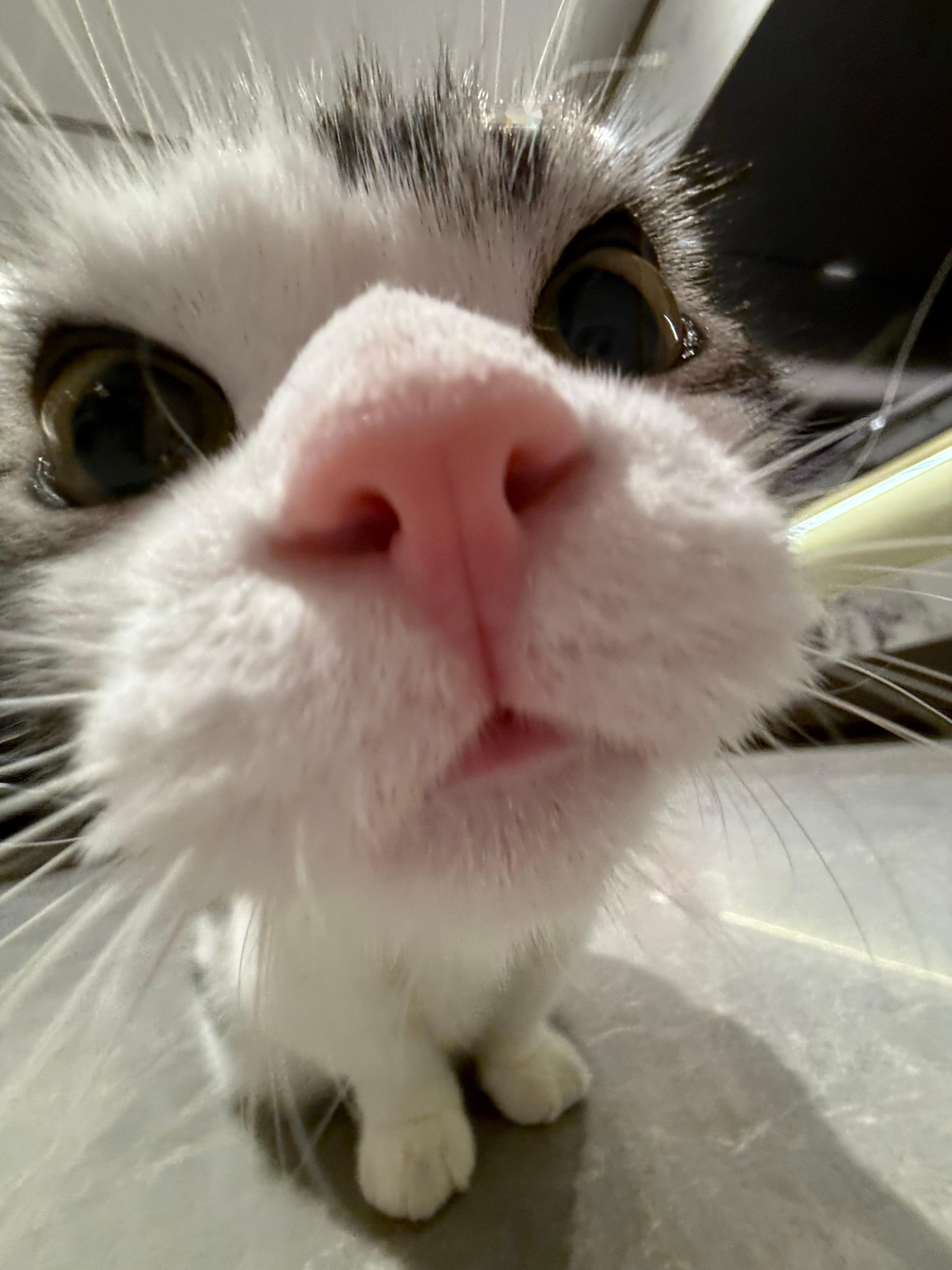 在今年除夕的前一天 我们几个朋友吃完夜宵在路上闲逛 偶遇了这只亲人的小猫咪 我们