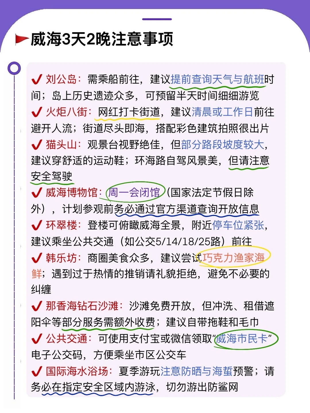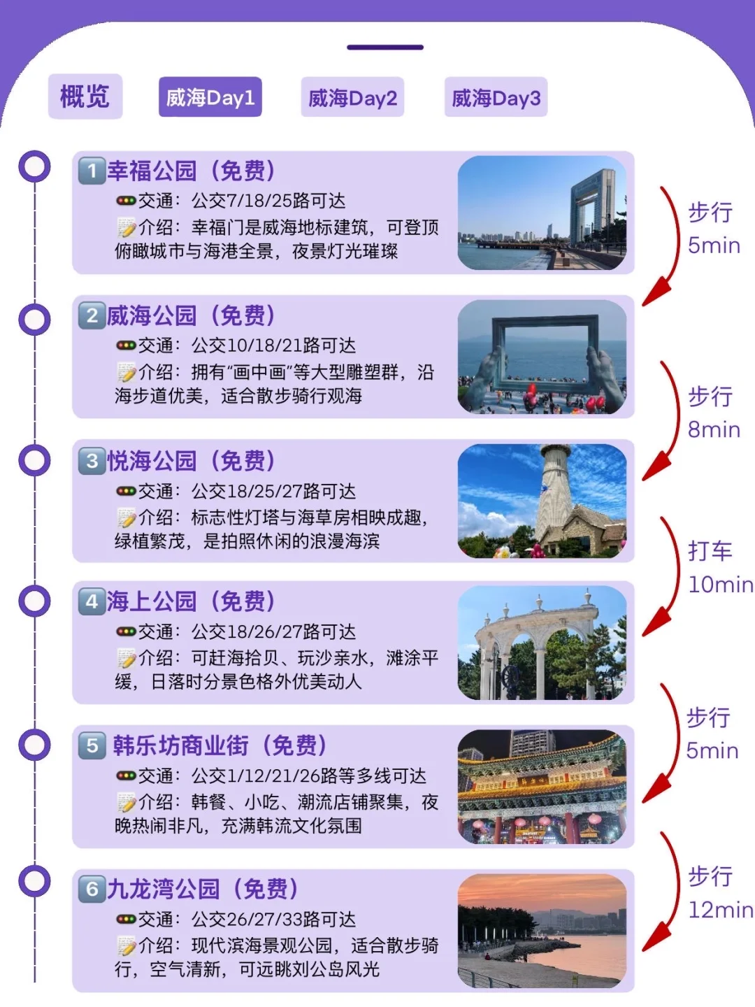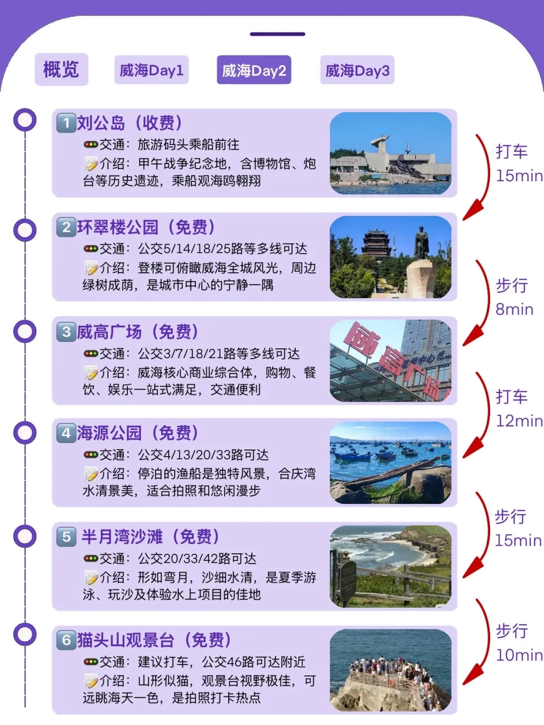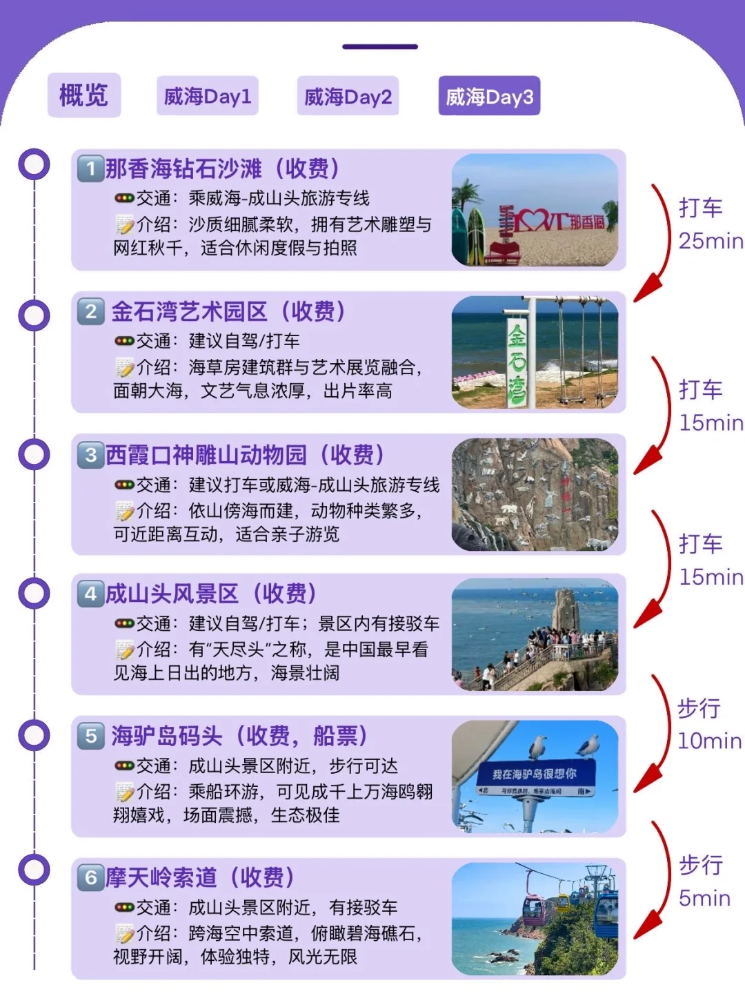 威海真的太适合短途旅行了!刚刚打卡回来细心整理的,3️⃣天2️⃣晚行程!轻松逛完👉18个景点,每天不赶时间,海风+沙滩+小众打卡地全安排上~