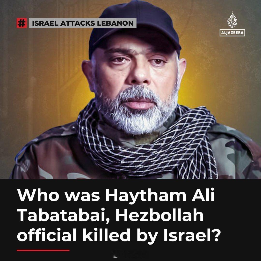 【以色列时隔半年再空袭貝鲁特 真主党「总參謀長」遭暗杀身亡】黎巴嫩真主党23日发表声明,证实该组织高級指揮官阿里·塔巴塔拜当天在以色列「背信弃义」的暗杀行动中身亡。以色列总理府和国防军亦宣布,以军空袭黎巴嫩首都貝鲁特,打死真主党「总參謀长」塔巴塔拜。