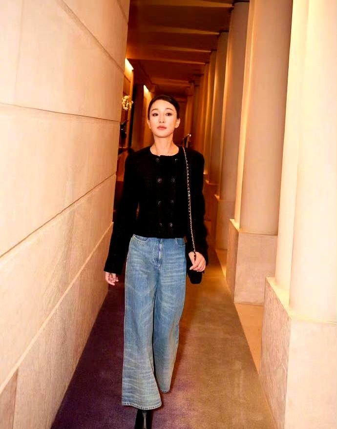 50岁的周迅,一套黑衣直接气场拉满。 一件黑色小香风短外套,配了条高腰阔腿裤,就这么简单。可一亮相就冲上热搜,全网都在夸。这套搭配厉害就厉害在“上紧下松”,把身材比例拿捏得死死的,配饰也只有银色耳环和手拿包,多一点都多余。 很多人都在扒同款,其实这身厉害的不是衣服,是人。她早就说过自己信奉“少即是多”,认为成熟女性该看重剪裁而不是潮流。这股子劲儿,是时间给的底气,真不是谁都能穿出来。优雅老去。 看看同龄的俞飞鸿、袁泉,一个知性一个干练,风格都很清晰。周迅的路子不一样,她总能在经典里加一点慵懒松弛感,设计师郭培说她能把基础款穿出高级感,是天赋也是沉淀。 所以她这套造型一出来,同款外套搜索量一天就涨了300%,涨了300%啊,平价替代款都卖空了。超过五万网友讨论这事,都觉得气质比年龄重要多了。 人穿衣服,不是衣服穿人,这话在她身上体现得明明白白。