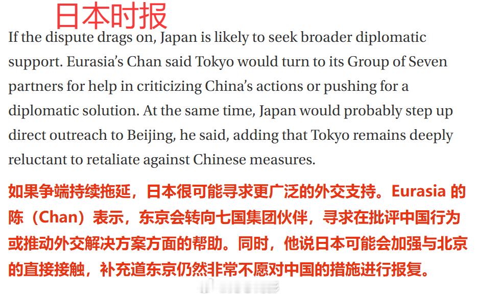 日本这事儿闹了这么些天了,你们不觉得美国表现得太安静了吗?俗话说打狗是要看主人的,何况日本可不是一般的美国狗,但现在这事儿被我们一路闹上联合国,话能说多重说多重,能多难听就多难听,当着美国的面说“日本想军国主义复辟”,“敌国条款适用于日本”、“中方将对日本的武力威胁行使自卫权”。美国这么多天了,除了21日有个美国国务院副发言人发了个帖子,念叨了“美日同盟坚如磐石,反对单方面改变台海现状”的老调之外……就没了?除开那个已经被定性为“表演性支持”的美国驻日本大使格拉斯,从美国官方到美国五角大楼,再到参众两院的议员们,对华强硬派们,我翻一下午都没翻到支持日本的言论。至于特朗普,那句“我们的盟友在贸易上对美国的剥削比中国还严重”已经够伤人了,他还不如不开口。已经有一些评论认为,特朗普政府本身就有在亚洲收缩战略的态度,再加上刚刚和中国“贸易休战”,所以不想为了日本过度刺激中国,更何况特朗普明年还要访华呢。所以当看到日本时报(图3)说,如果中国再逼下去,日本可能转向七国集团(G7)求助时,我都替日本感觉悲凉……爸爸不负责也就算了,但说好的“民主同盟”呢?说好的五眼联盟呢?曾经被称为“印太小北约”的四国联盟(QUAD)呢?人家中国都有俄罗斯官方公开支持,现在你们倒是说句话啊!
