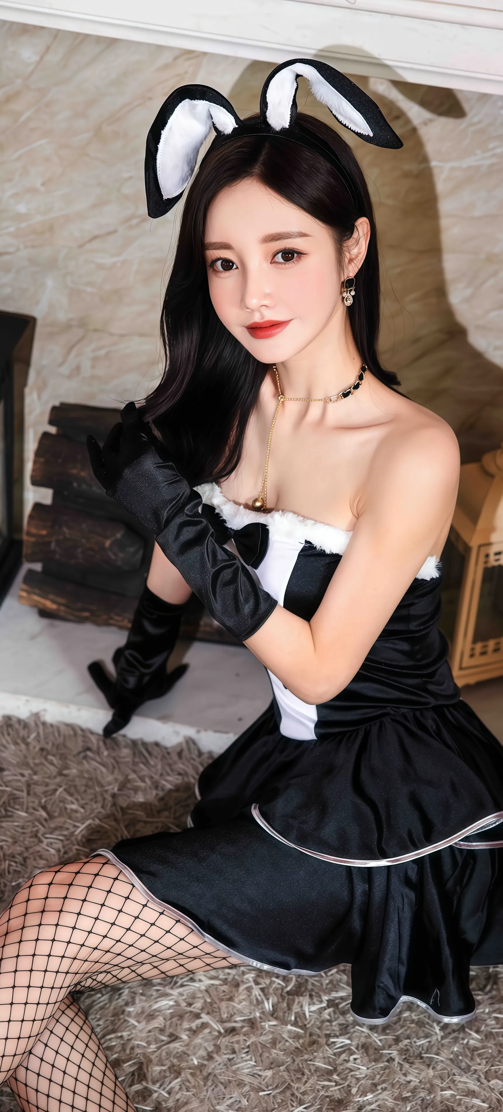 甜美女仆装,可爱兔耳朵,复古背景,魅力满满!女神图来袭 可爱性感美女、