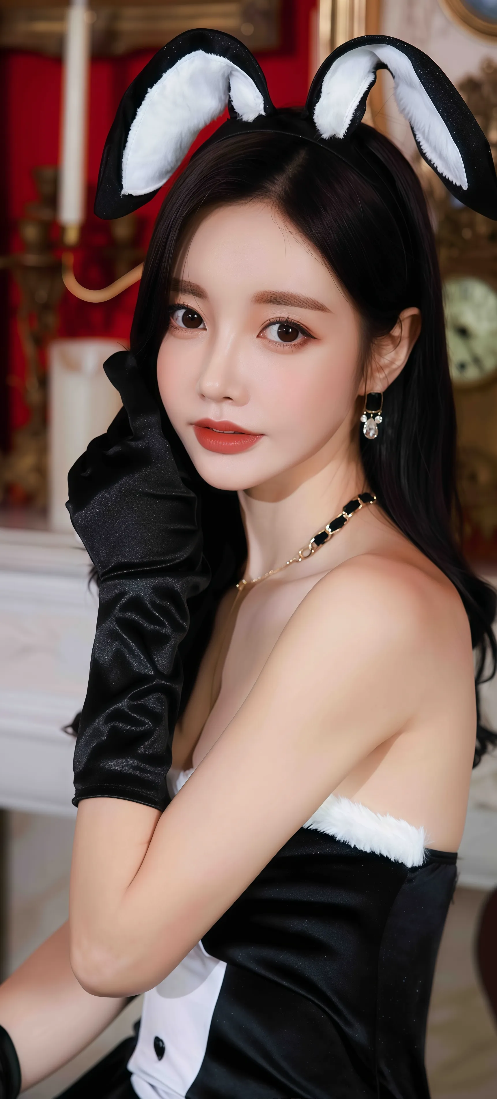 甜美女仆装,可爱兔耳朵,复古背景,魅力满满!