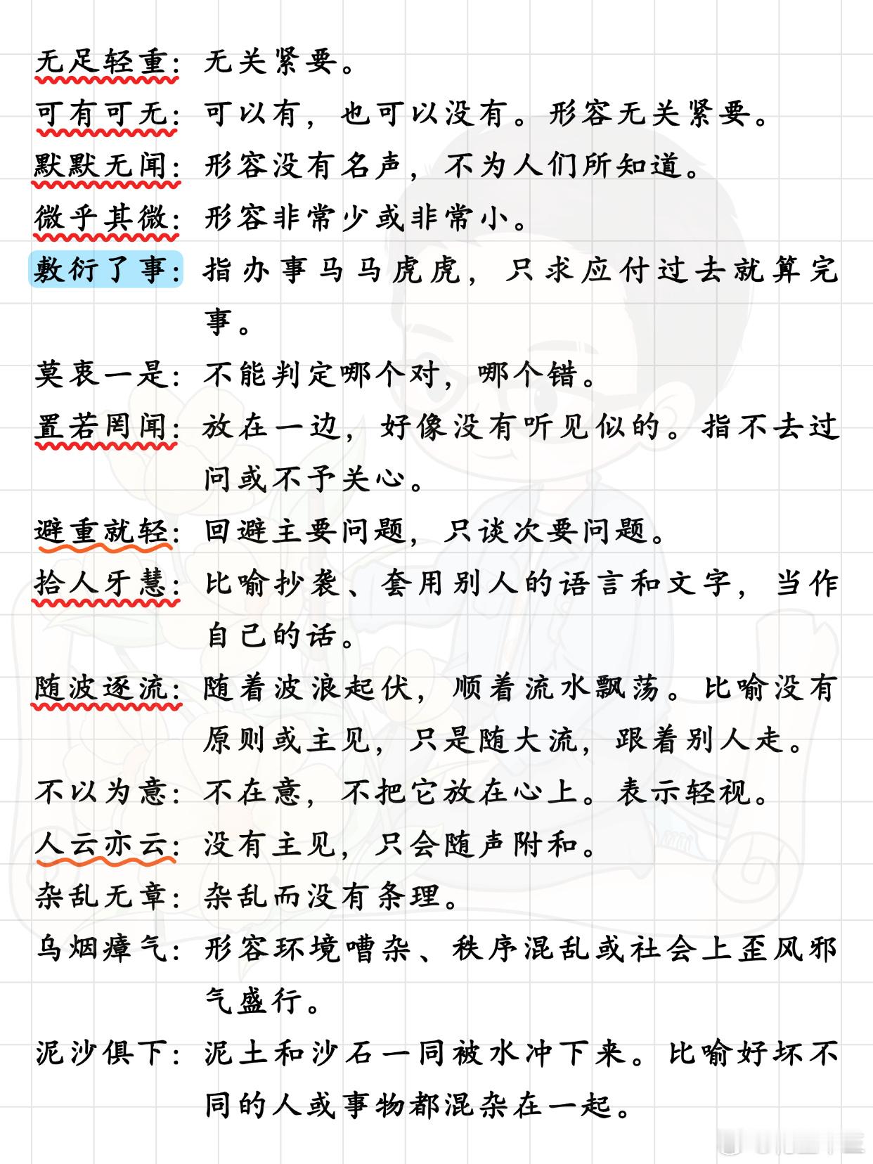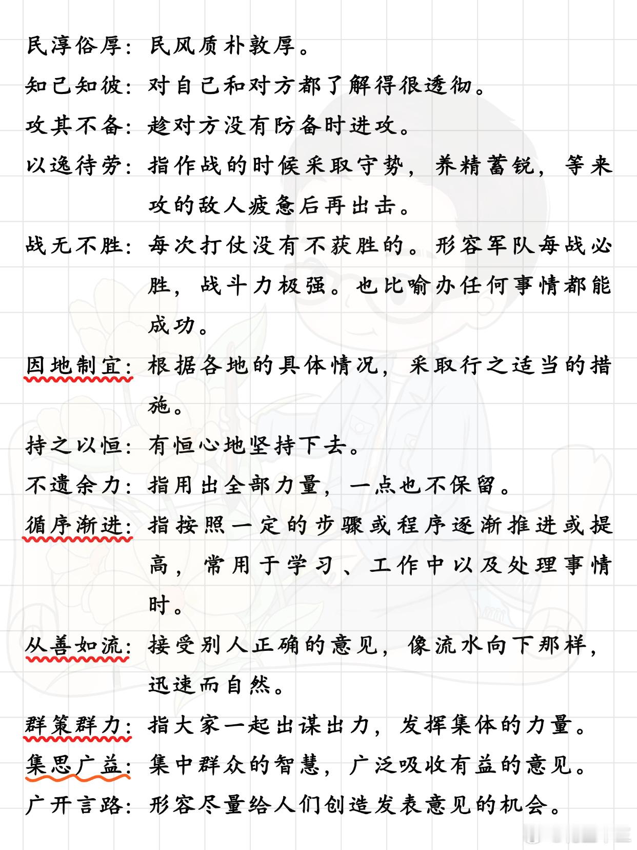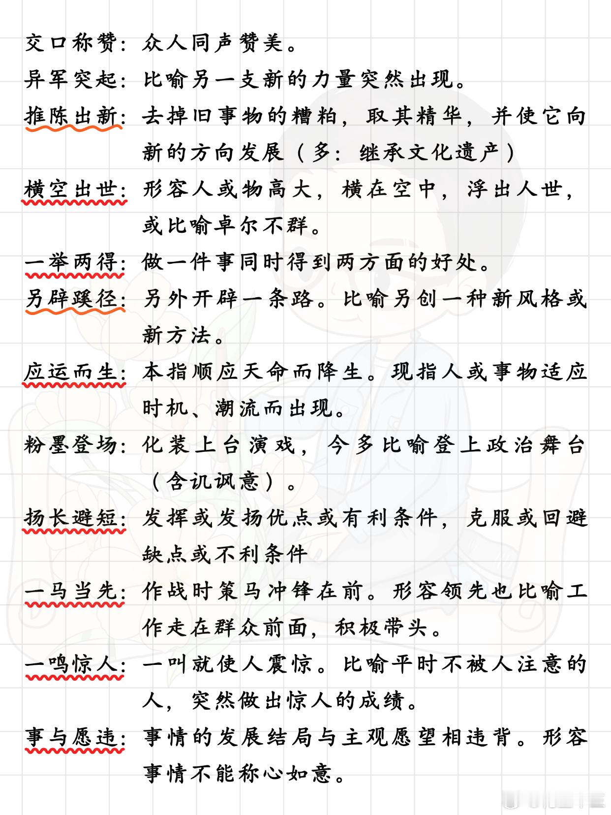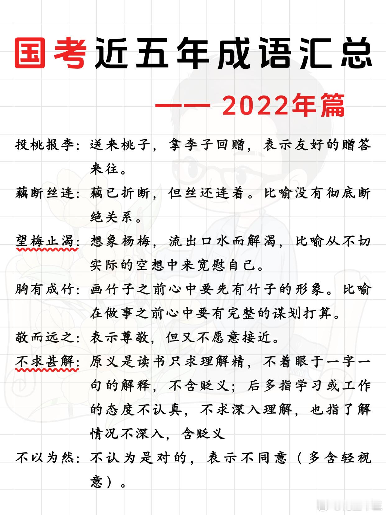 国考近五年成语整理【2022年篇】今天更新21/22/23年成语明天更新24/25年成语红色波浪线:代表近五年出现2次橙色波浪线:代表近五年出现3次蓝底色 :代表近五年出现4次